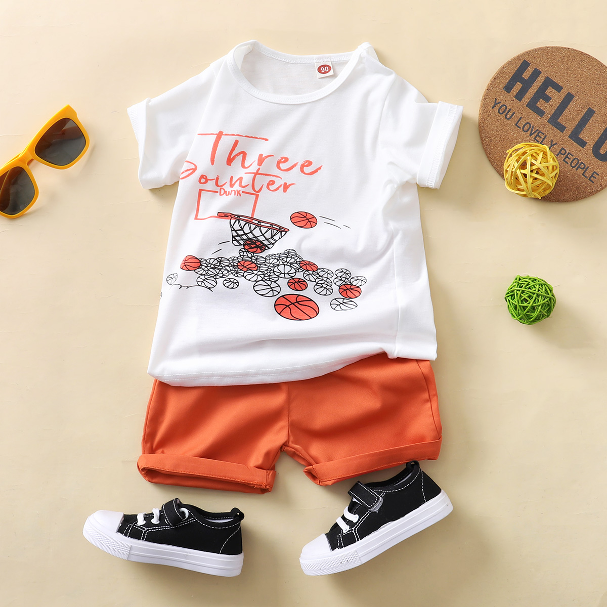 Toddler Boy Cotton Cartoon Basketball Top & Shorts Wholesale