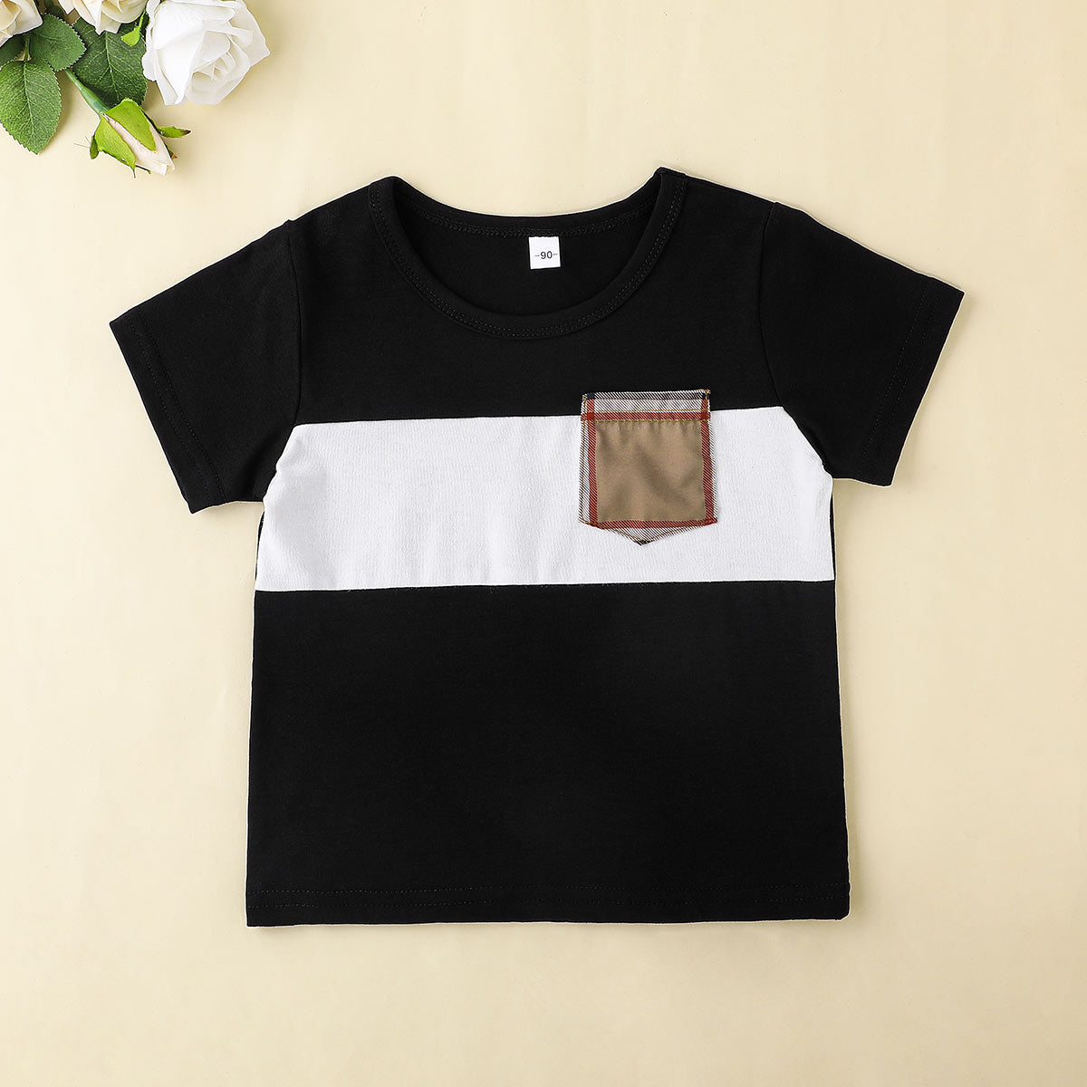 Toddler Boy Plaid Fabric Blocking Casual T-shirt & Shorts Wholesale