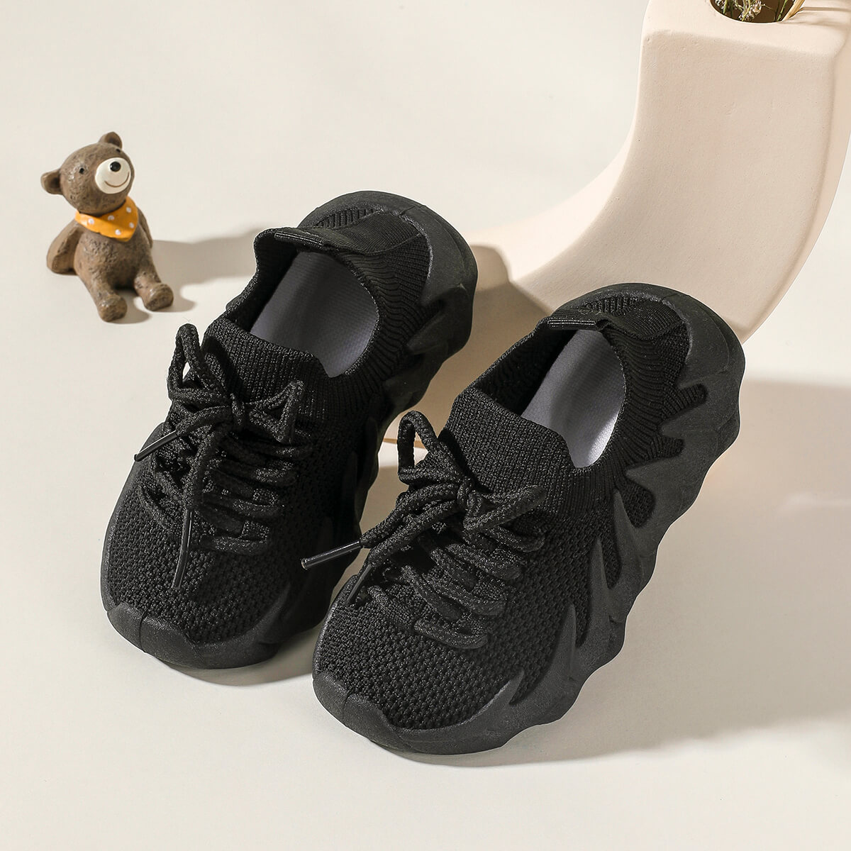 Toddler Boy Solid Color Soft Sole Lace-up Front Sneakers Wholesale