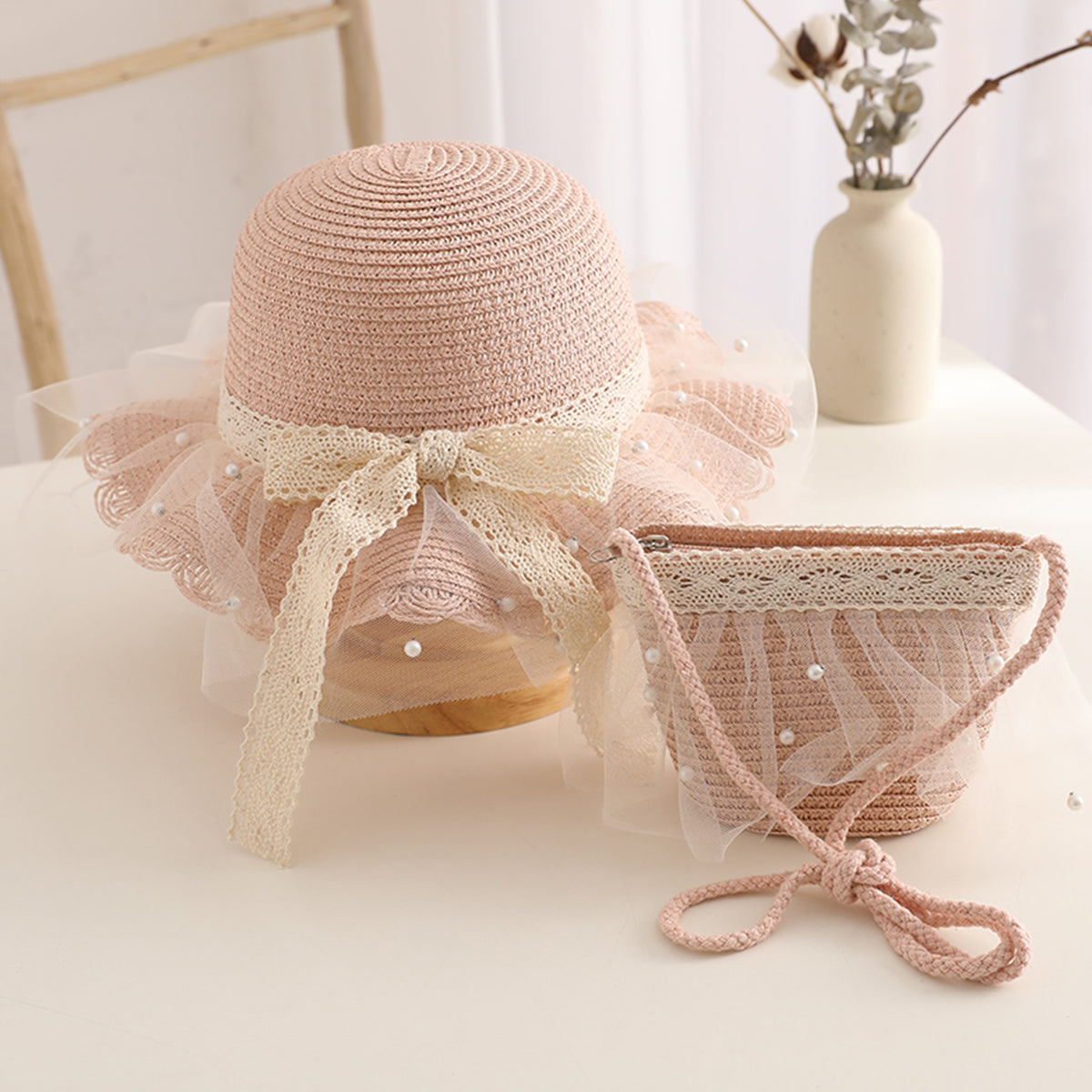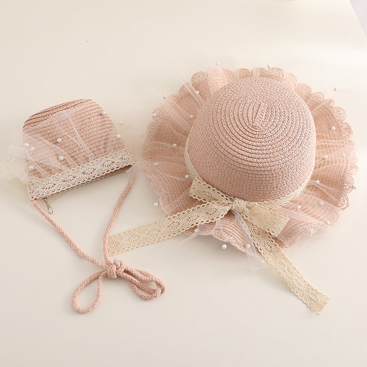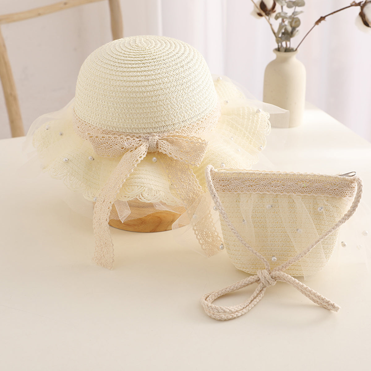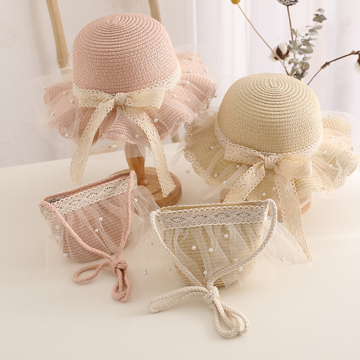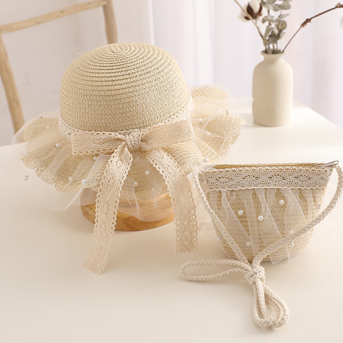 Toddler Girl 2-Piece Lace Trim Pearl Hat Set Wholesale