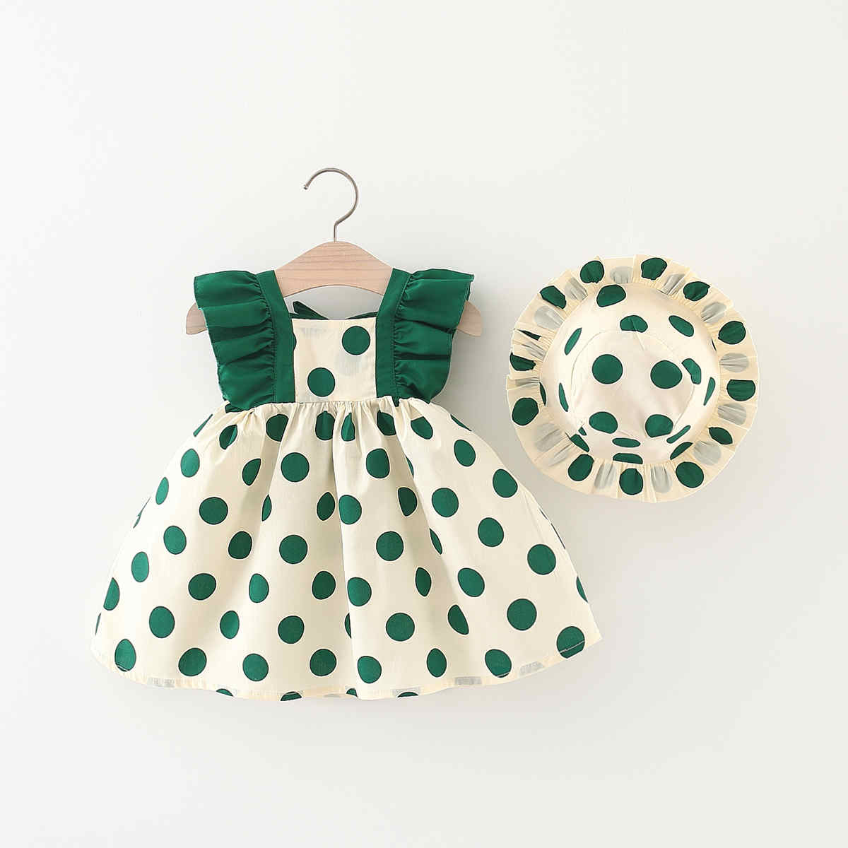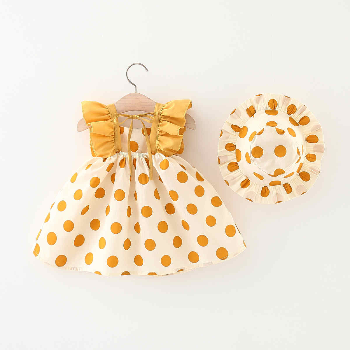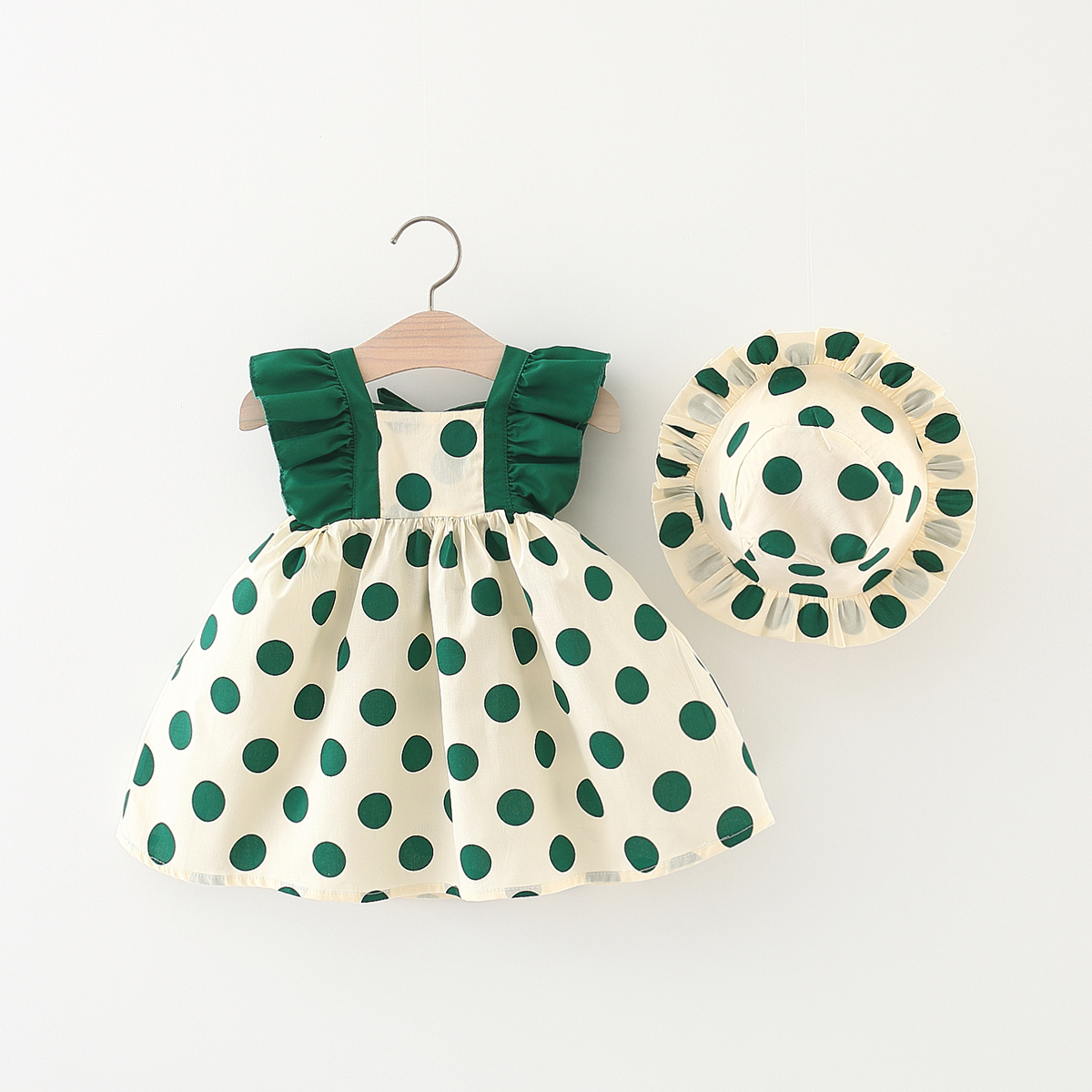 Toddler Girl Casual Cute Wave Point Dress & Hat Wholesale