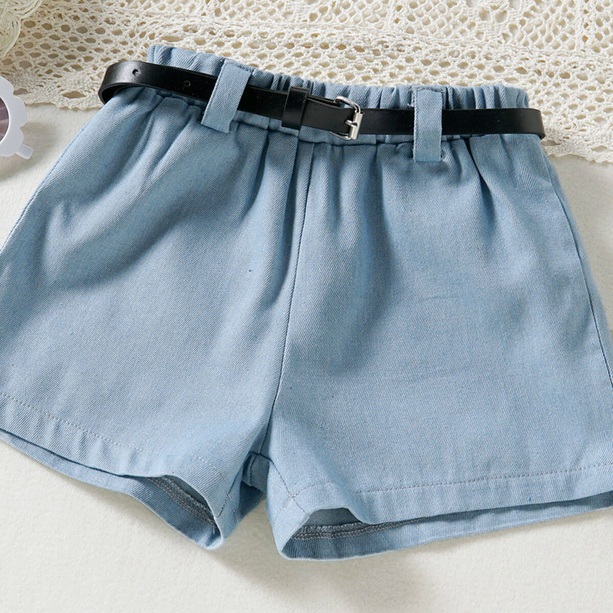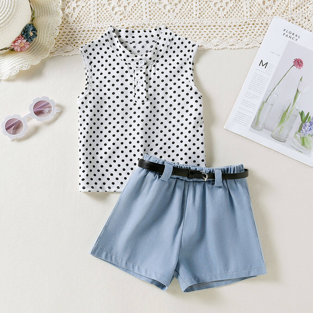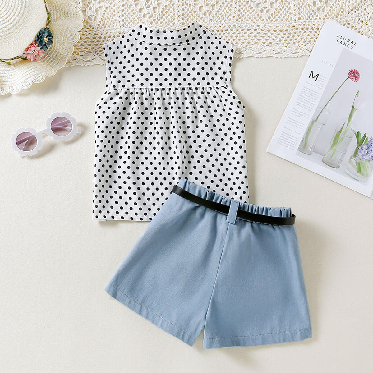Toddler Girl Casual Eleguard Polka Dot Shirt & Shorts & Belt Wholesale