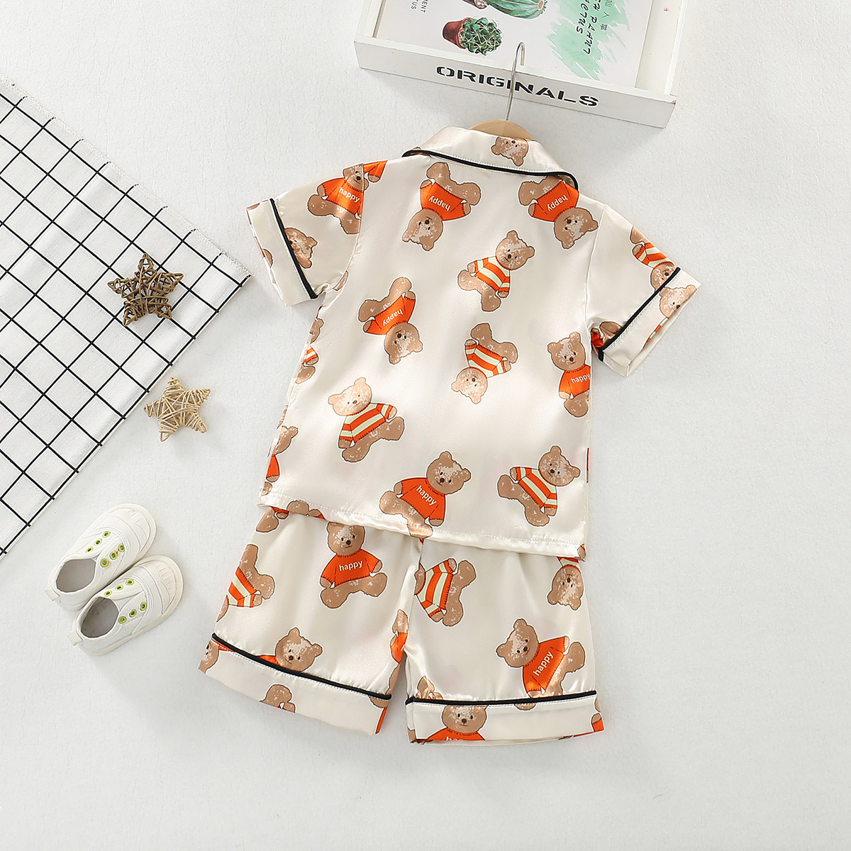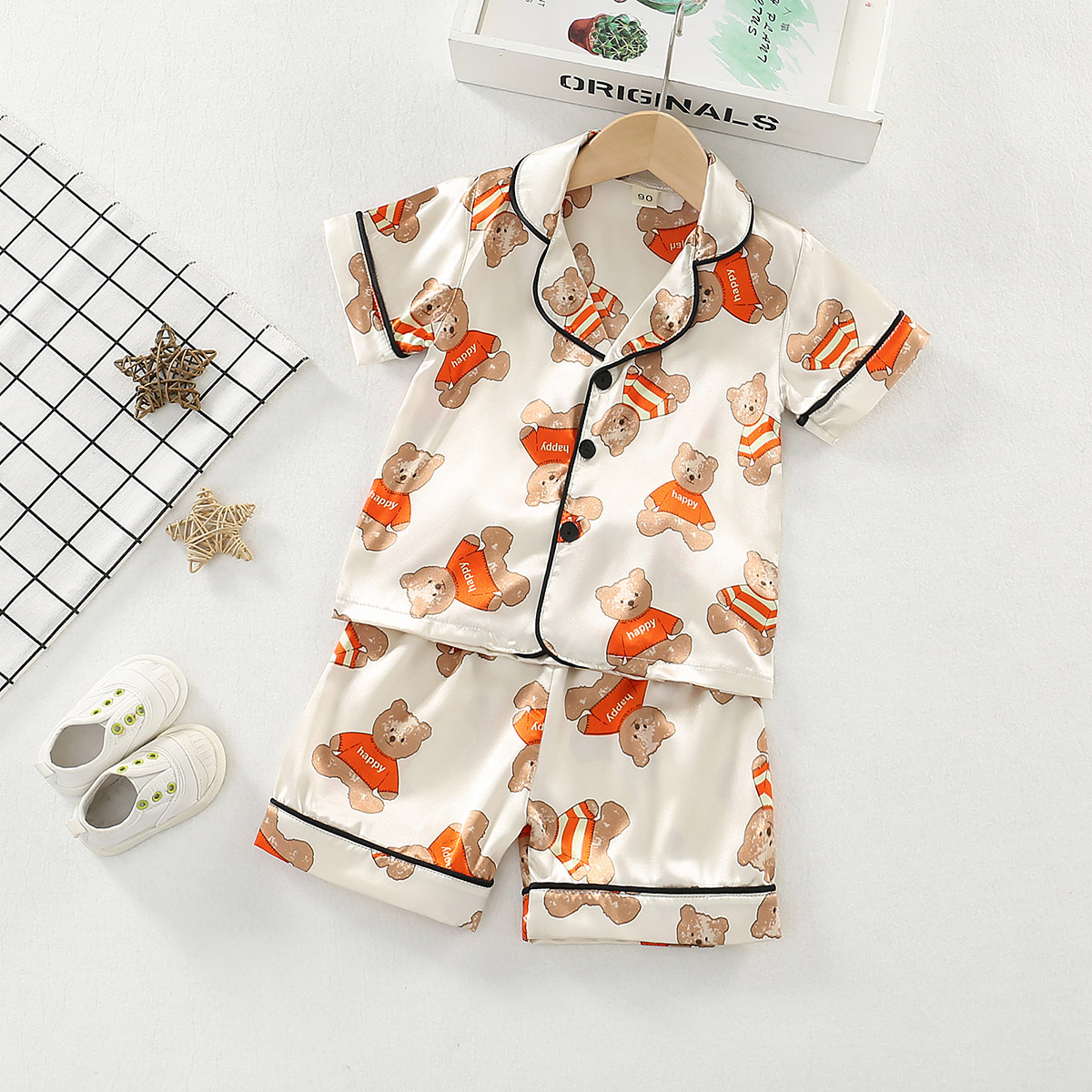 Toddler Girl Pajamas Bear Lapel Pajamas Plaid Top & Shorts Wholesale