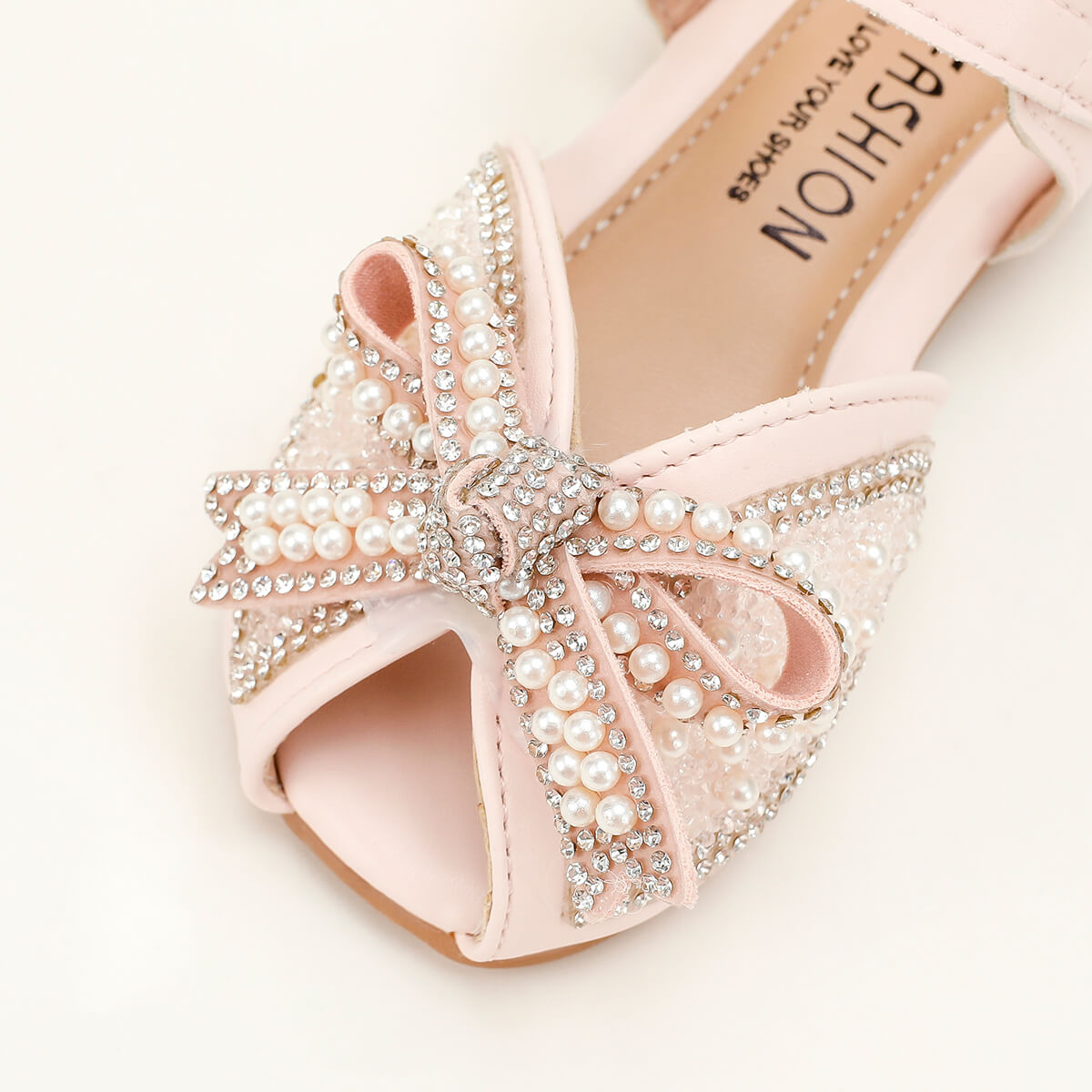 Toddler Girl Pearl Rhinestone Bow Sandals Wholesale