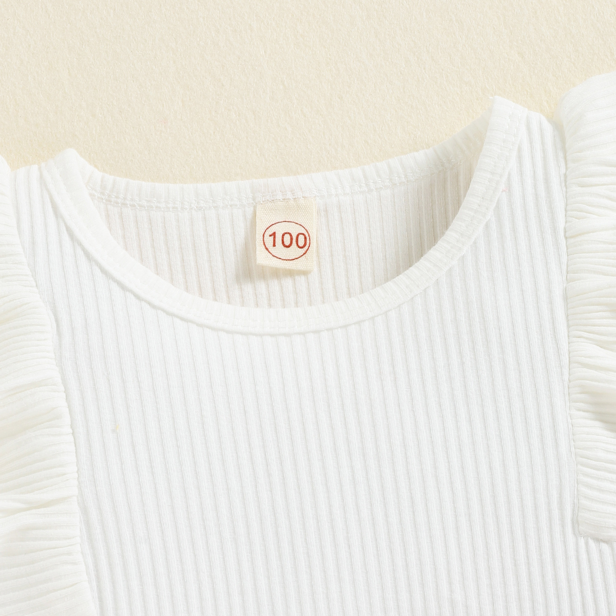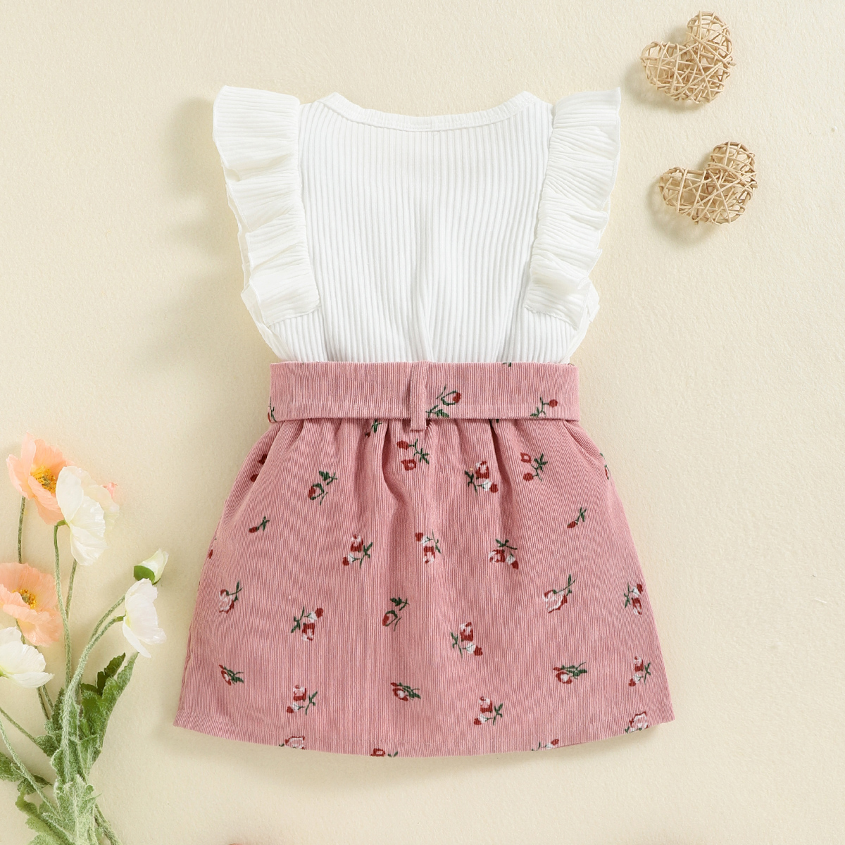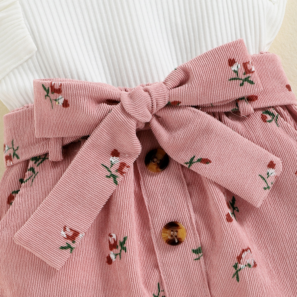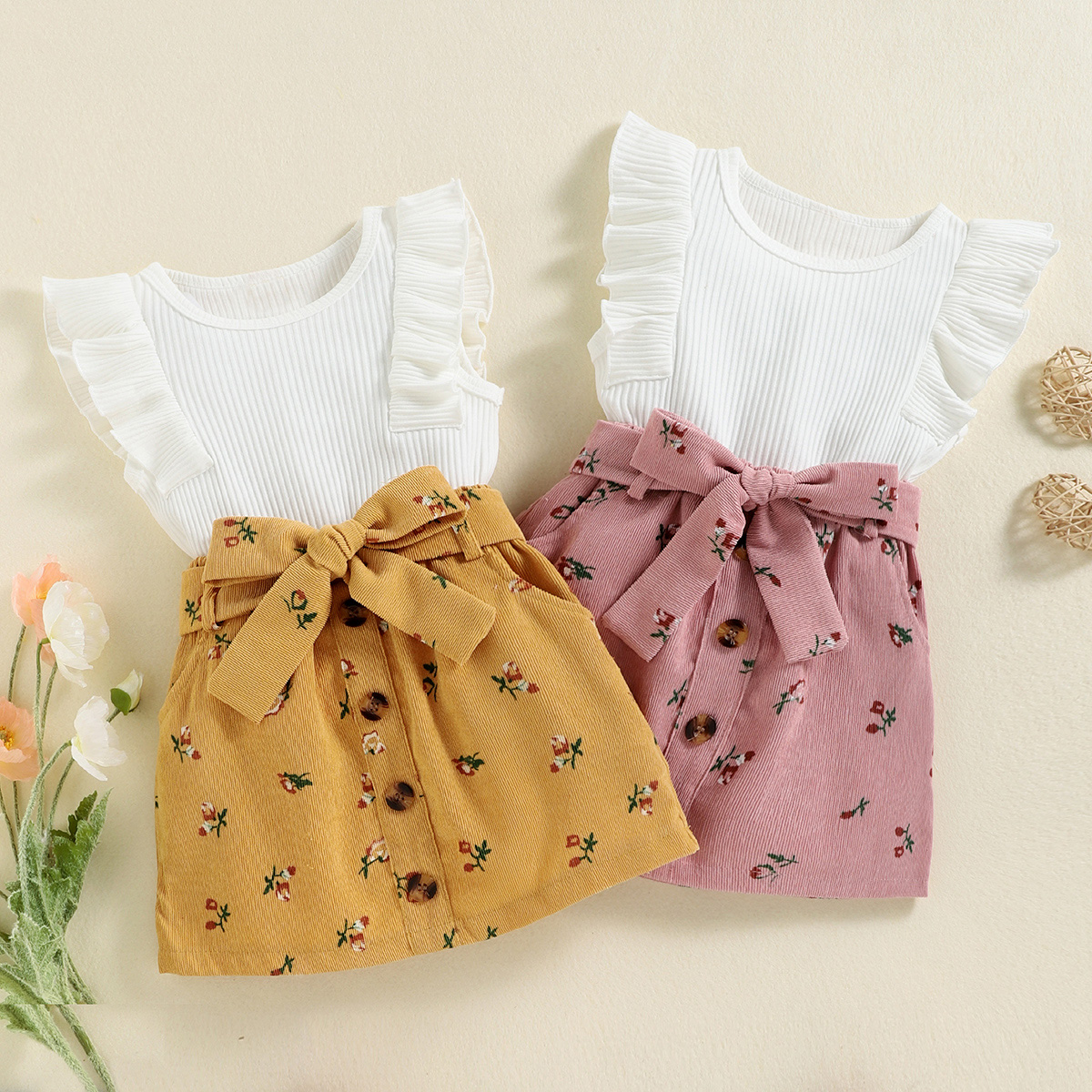 Toddler Girl Solid Ribbed Tropical Top & Corduroy A-line skirt Wholesale