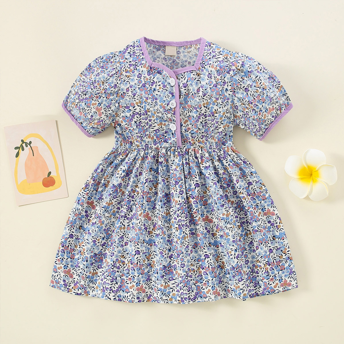 Toddler Girl Sweet Floral Square Collar Dress Wholesale