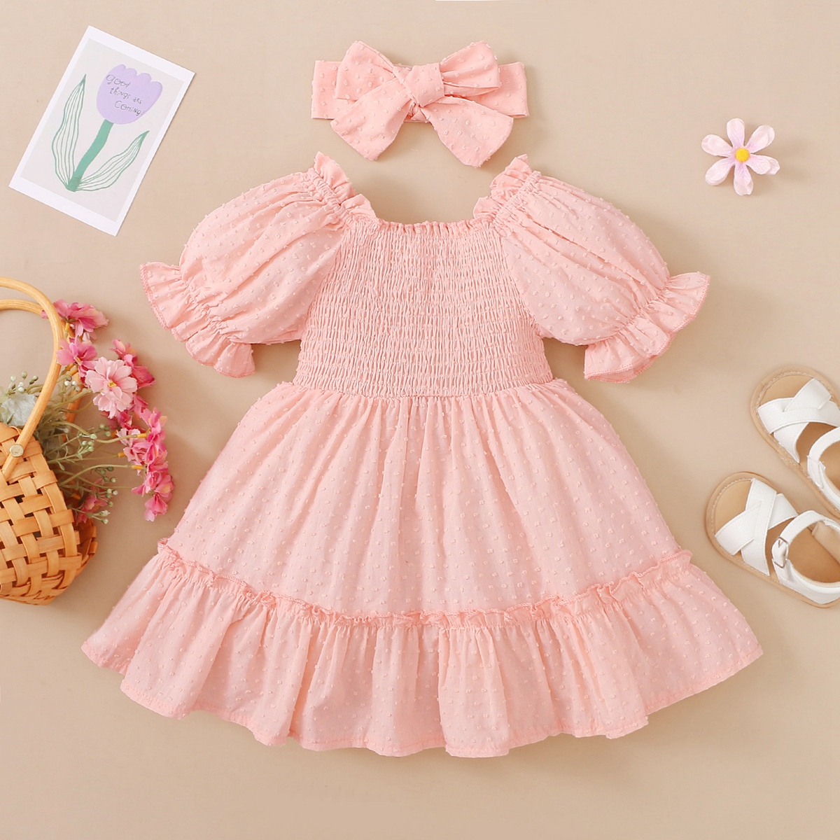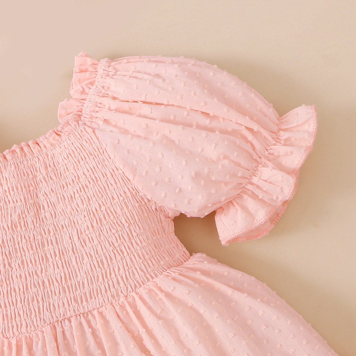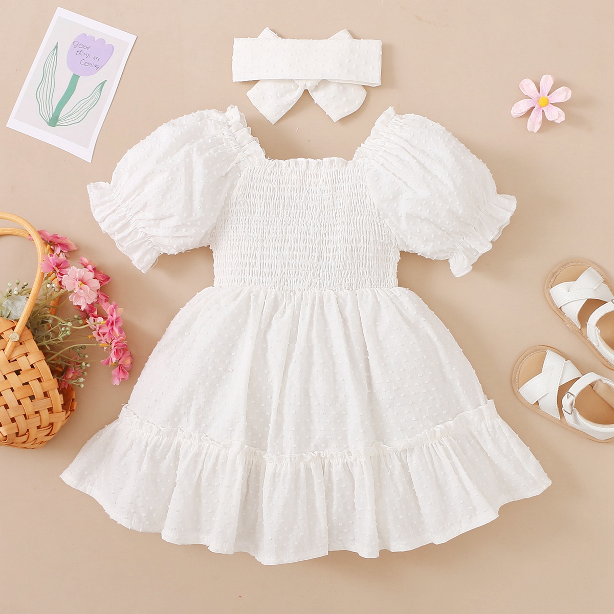 Toddler Girl Sweet Smocking Puff Sleeve Top Dress Wholesale