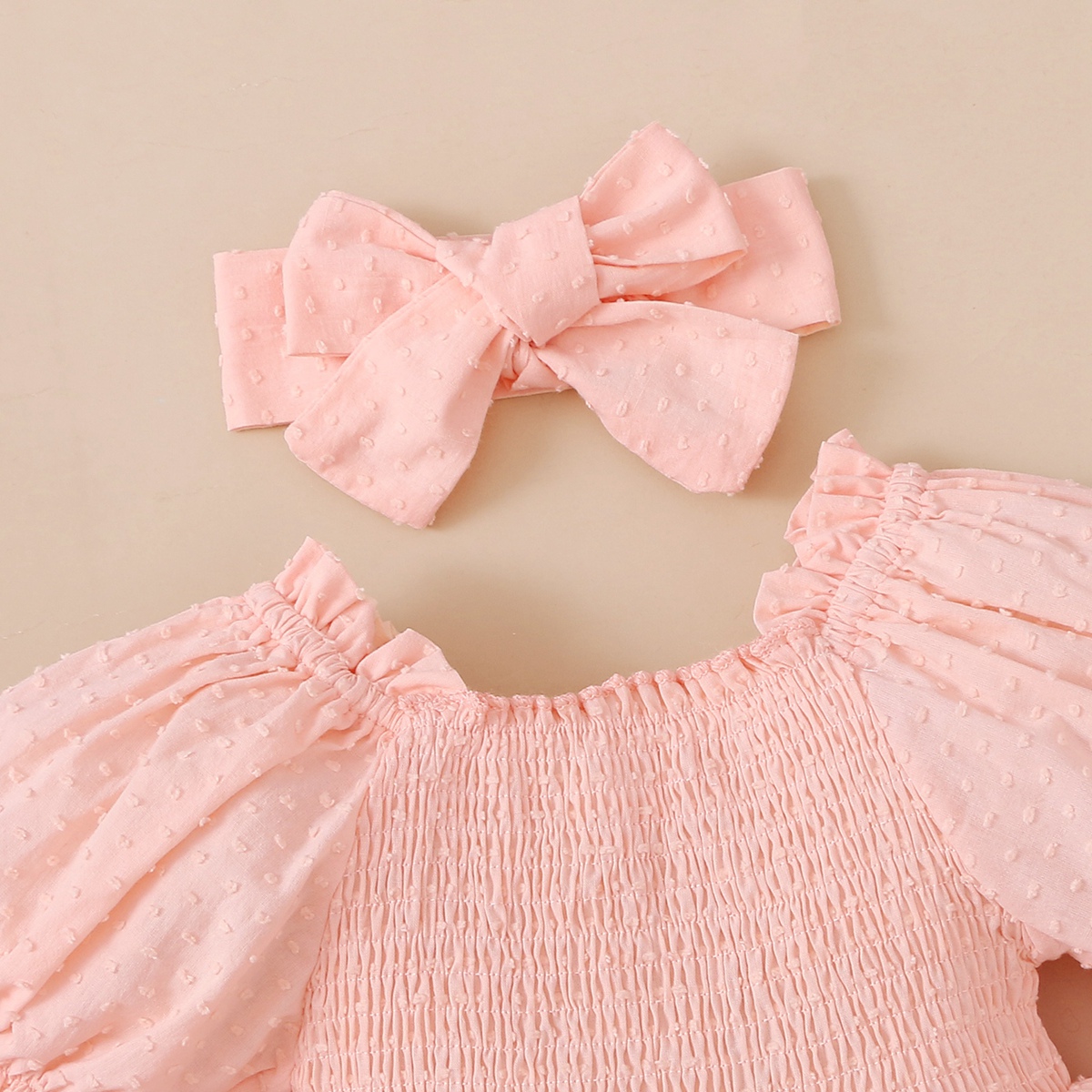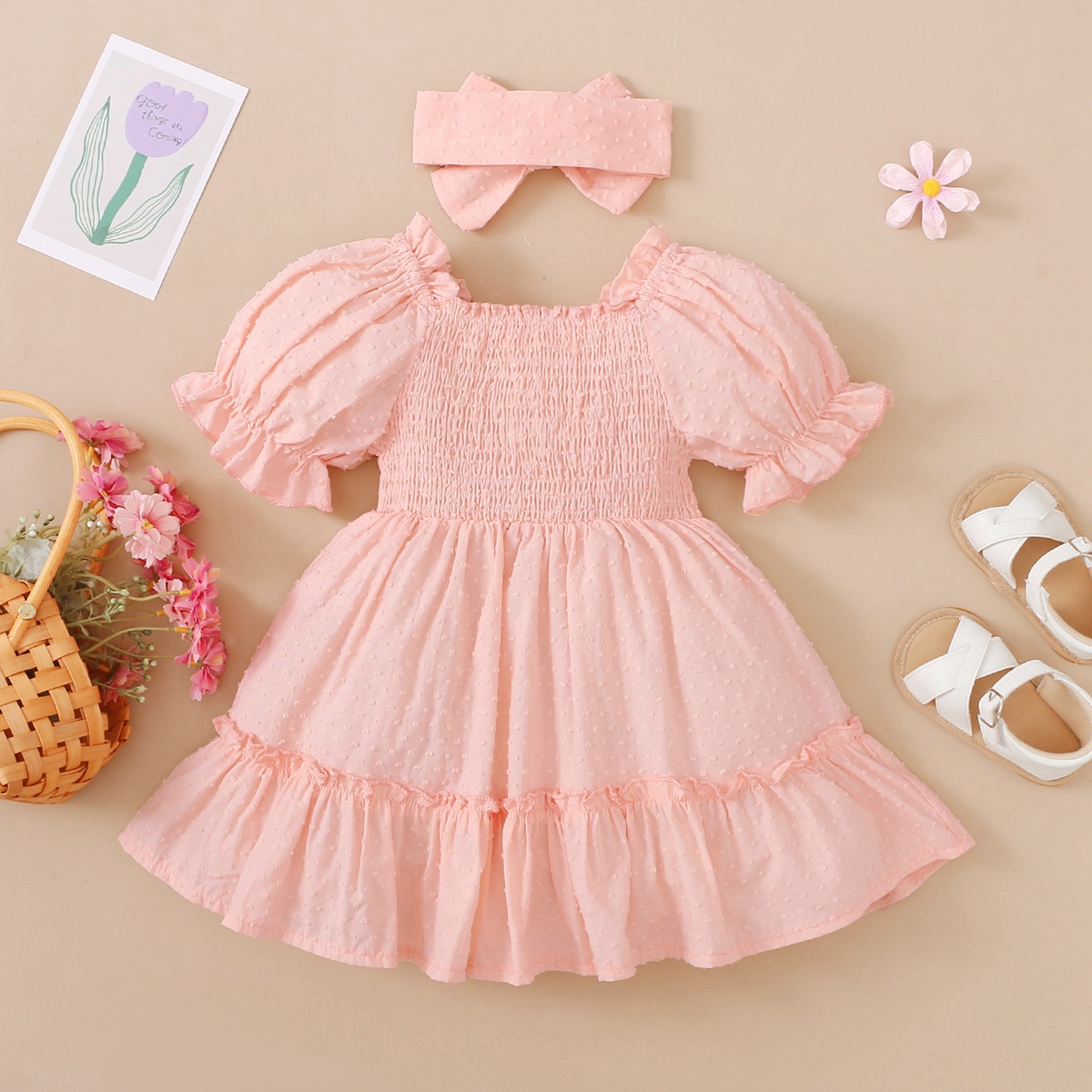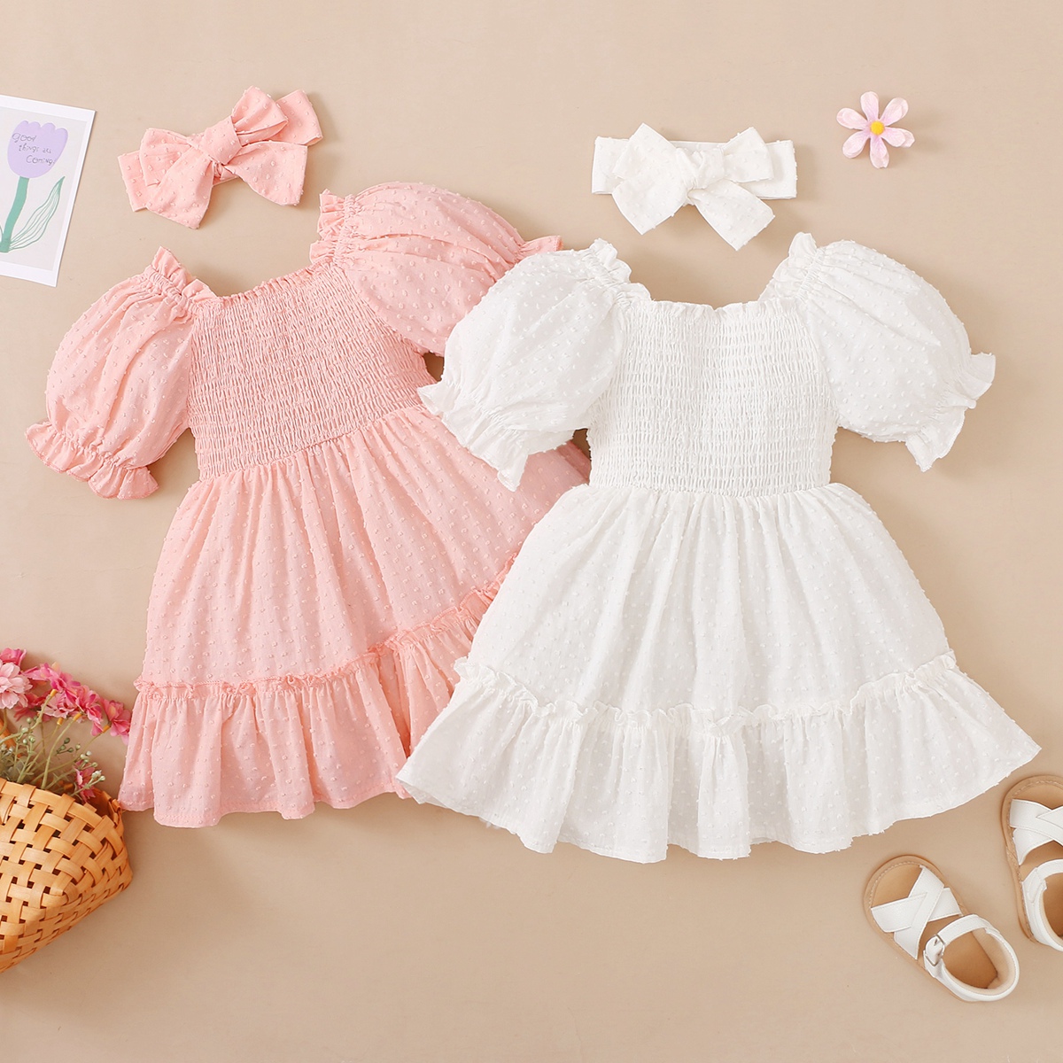 Toddler Girl Sweet Smocking Puff Sleeve Top Dress Wholesale
