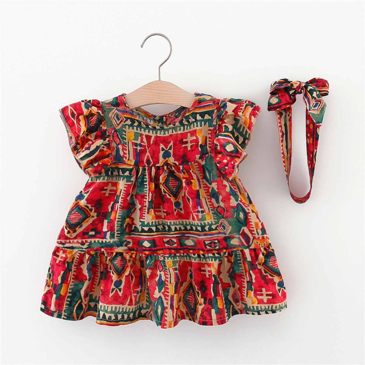 Toddler Girls Butterfly Sleeve Boho Umbrella Skirt Dress Wholesale