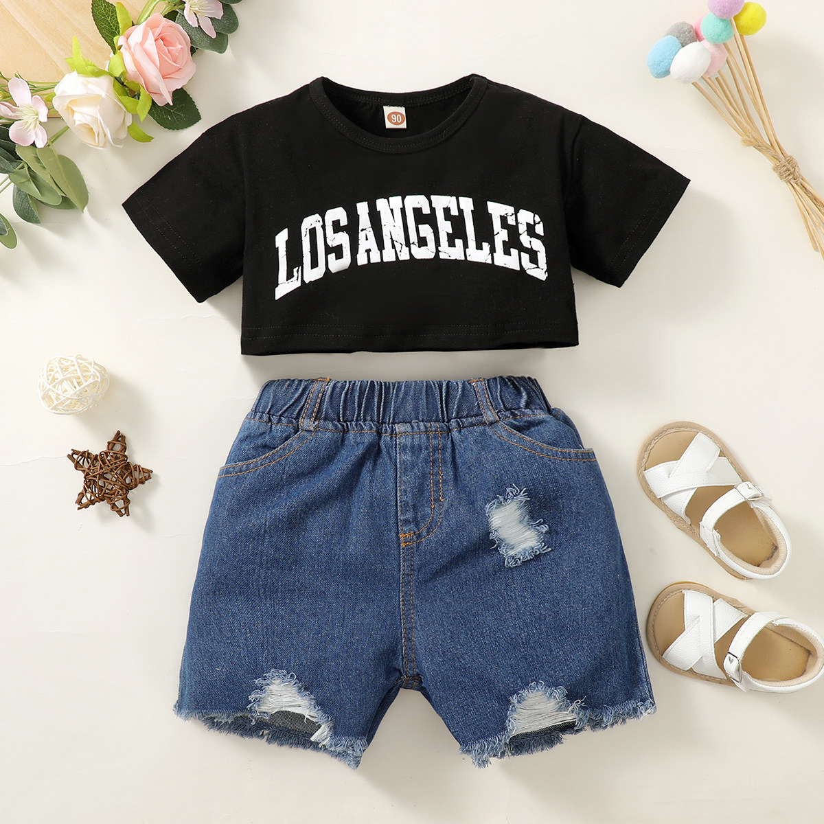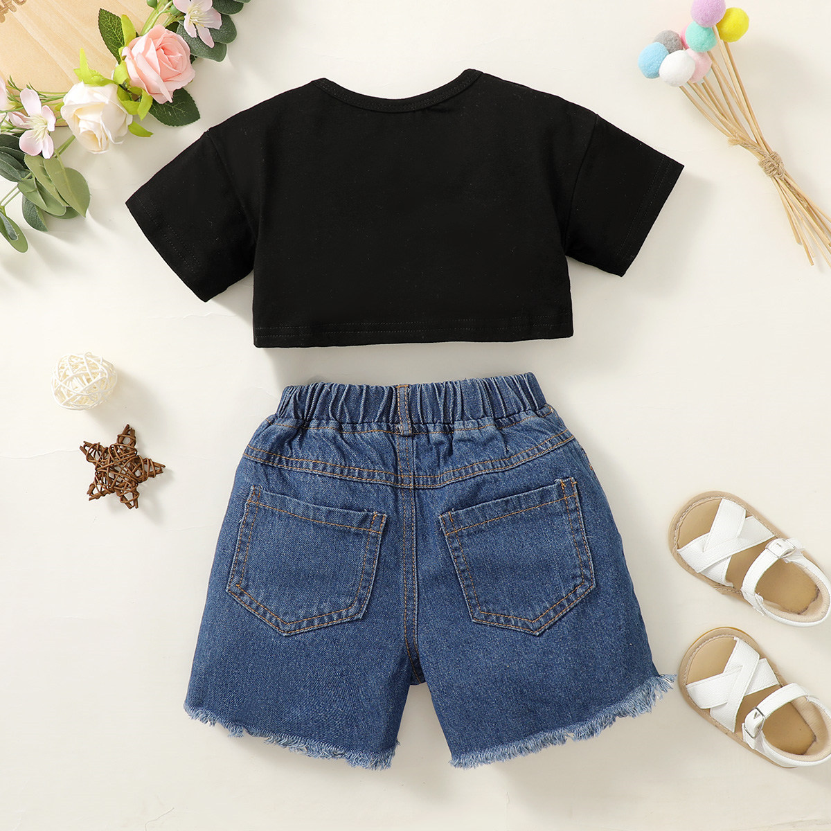 Toddler Girls Casual Letter Color-block Top & Shorts Wholesale