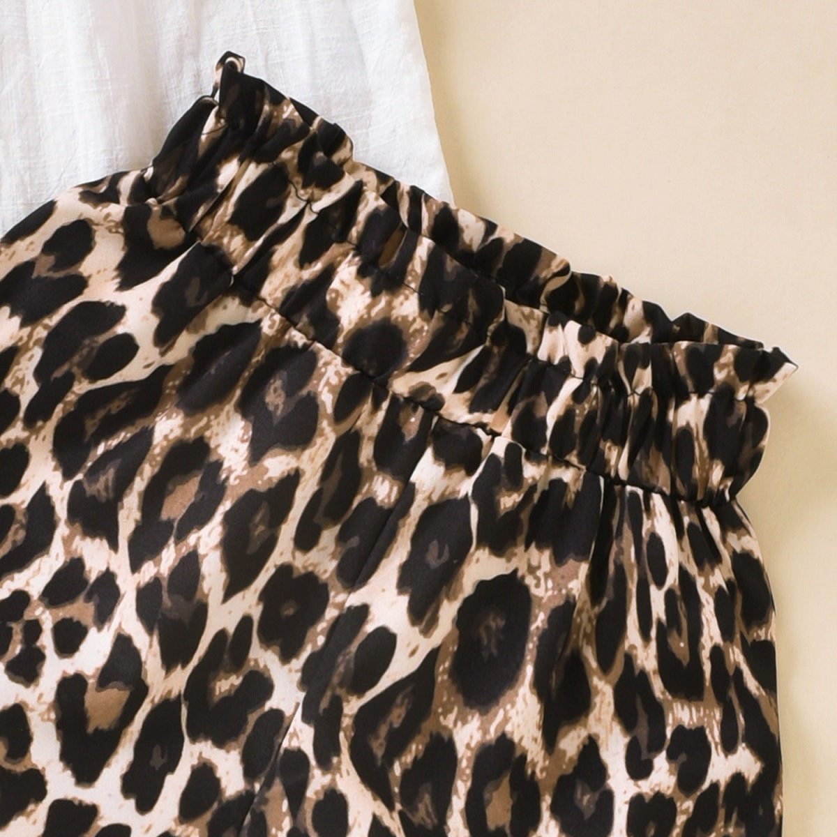 Toddler Girls Collar Leopard Solid Top & Shorts Wholesale