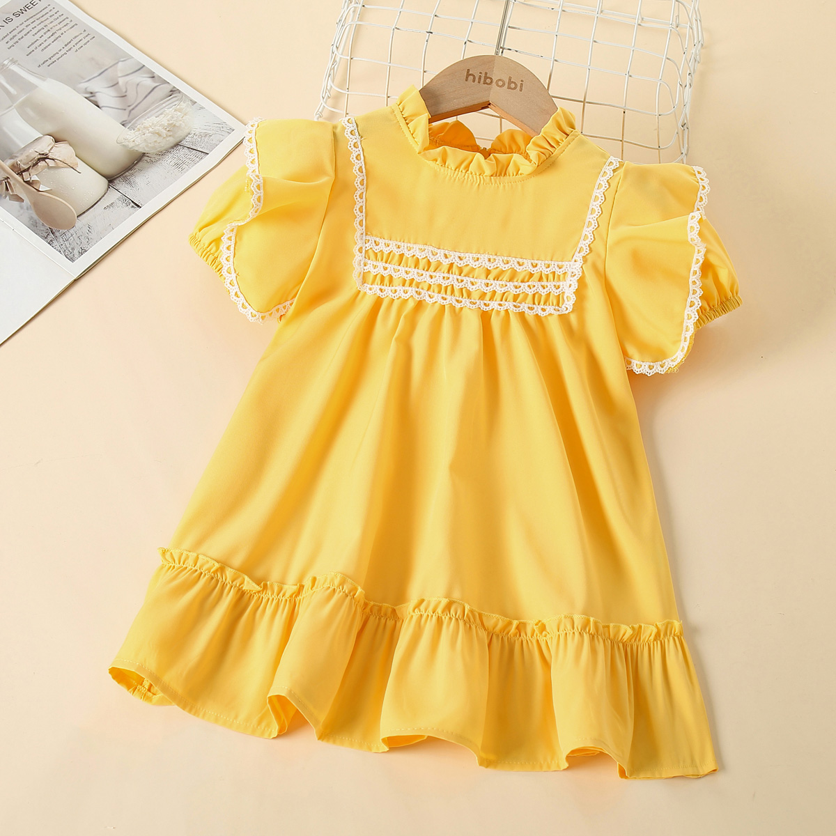 Toddler Girls Cotton Sweet Solid Ruffle Dress Wholesale