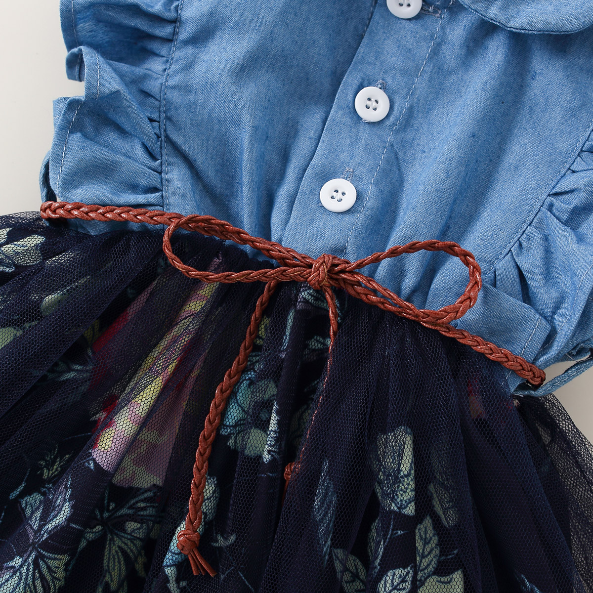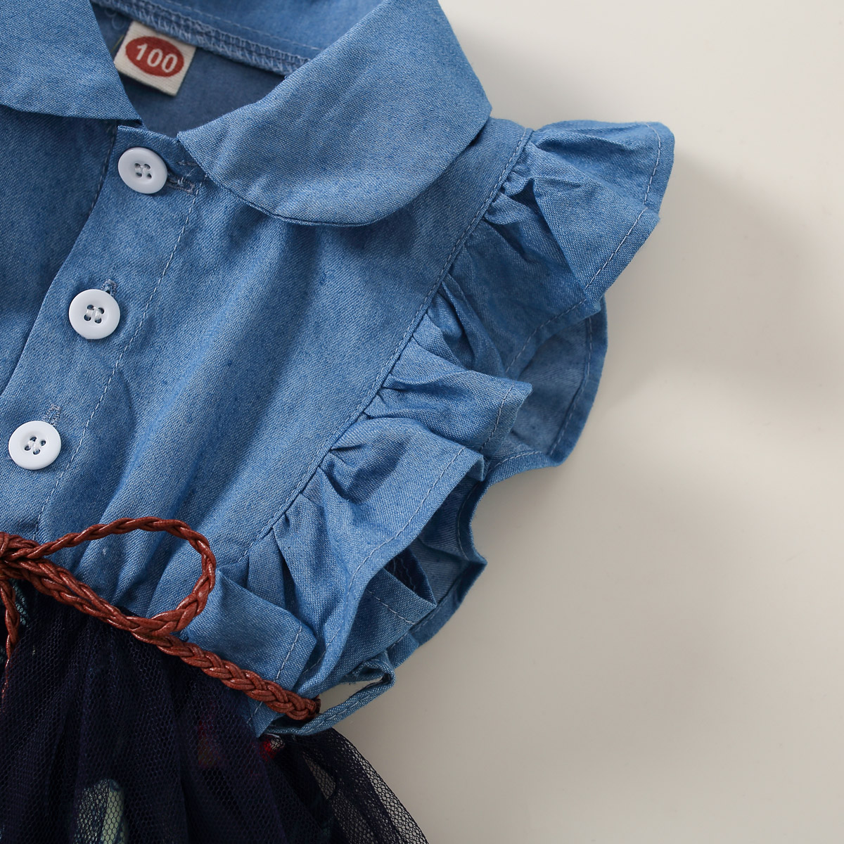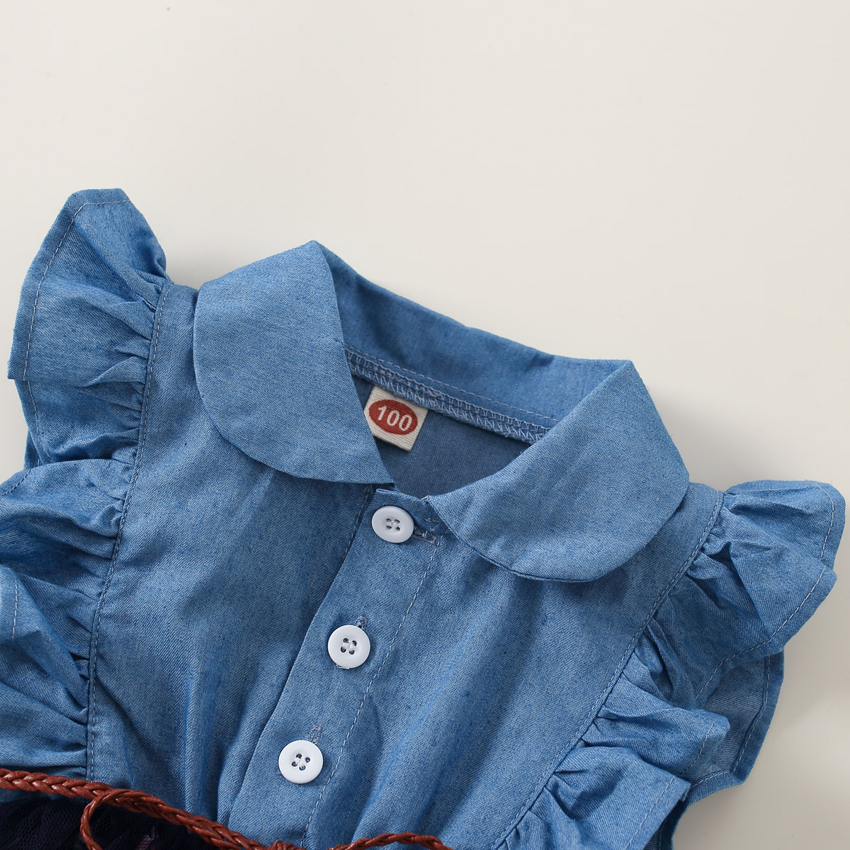 Toddler Girls Lapel Princess Skirt Color-block Sweet Ruffles Mesh Dress Wholesale