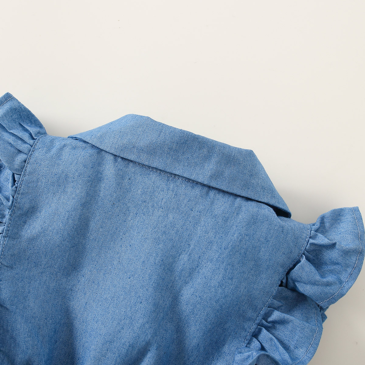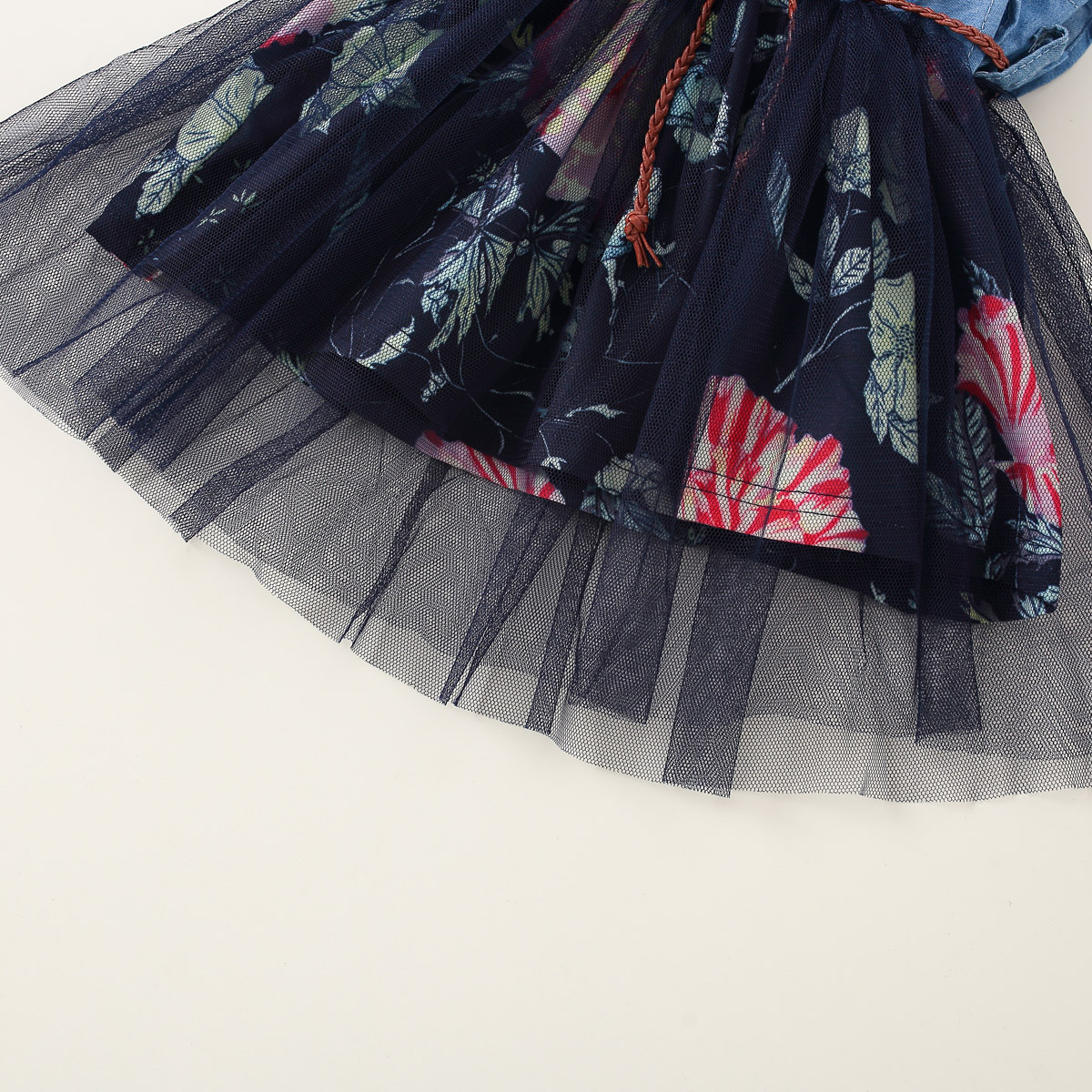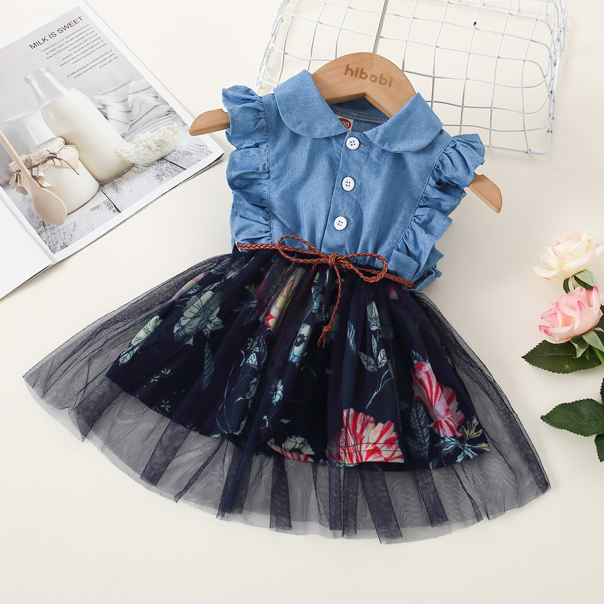 Toddler Girls Lapel Princess Skirt Color-block Sweet Ruffles Mesh Dress Wholesale