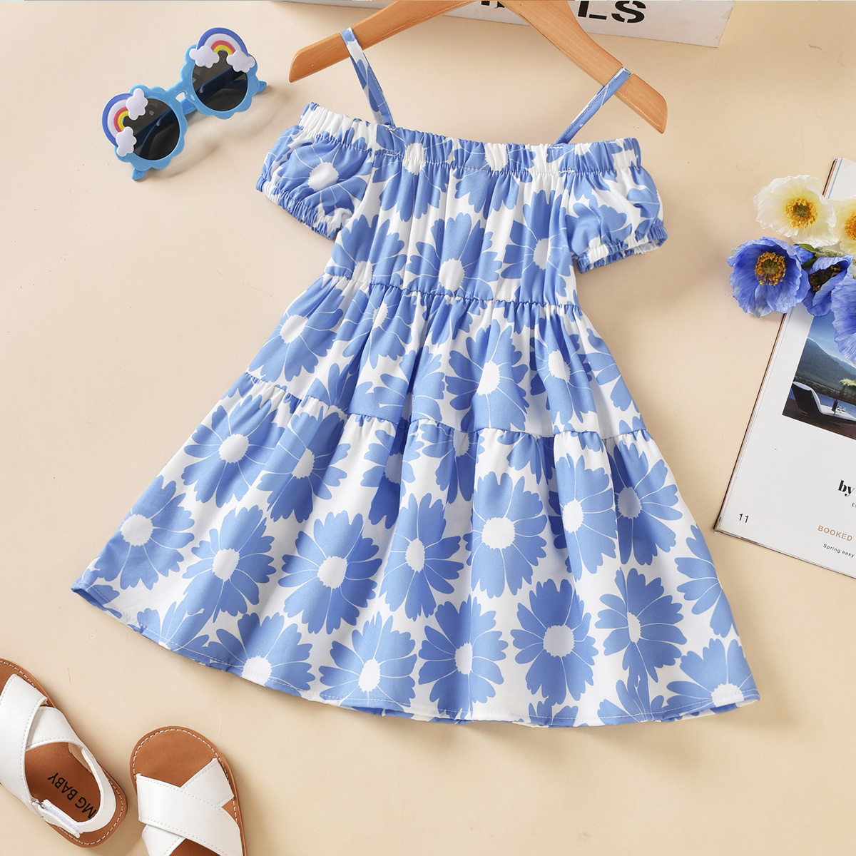 Toddler Girls Slash Neck Floral Color-block Dress Wholesale