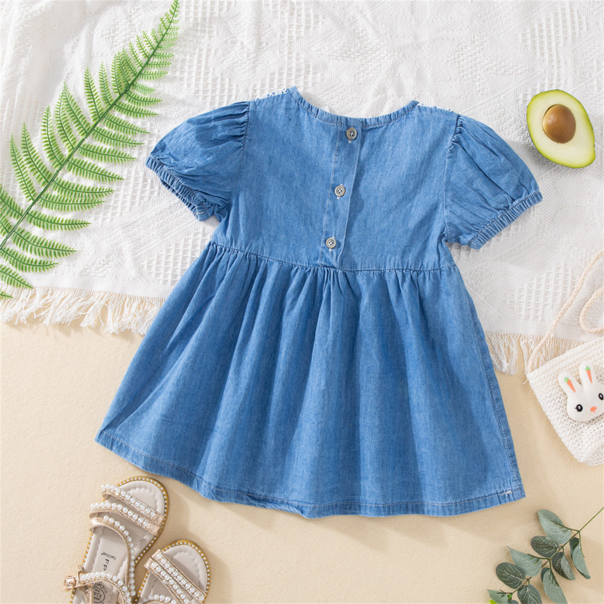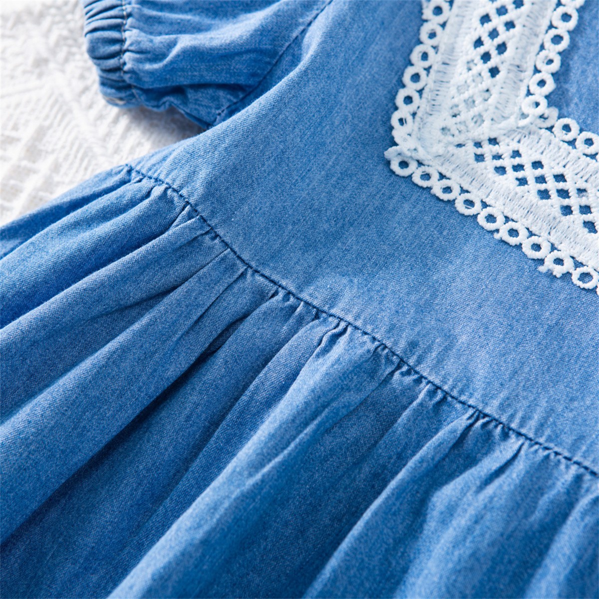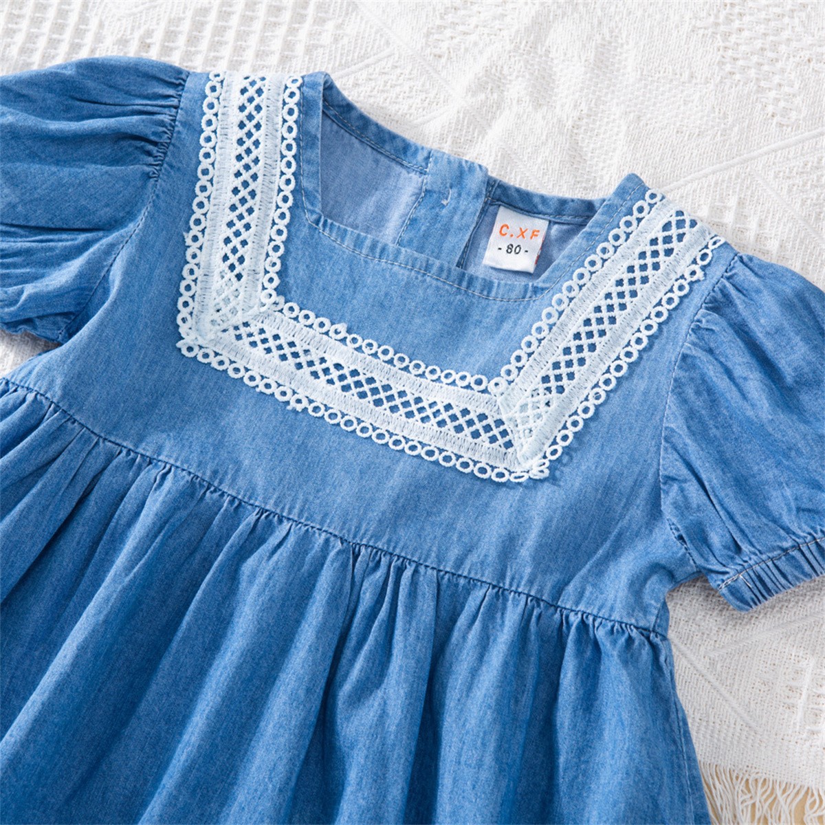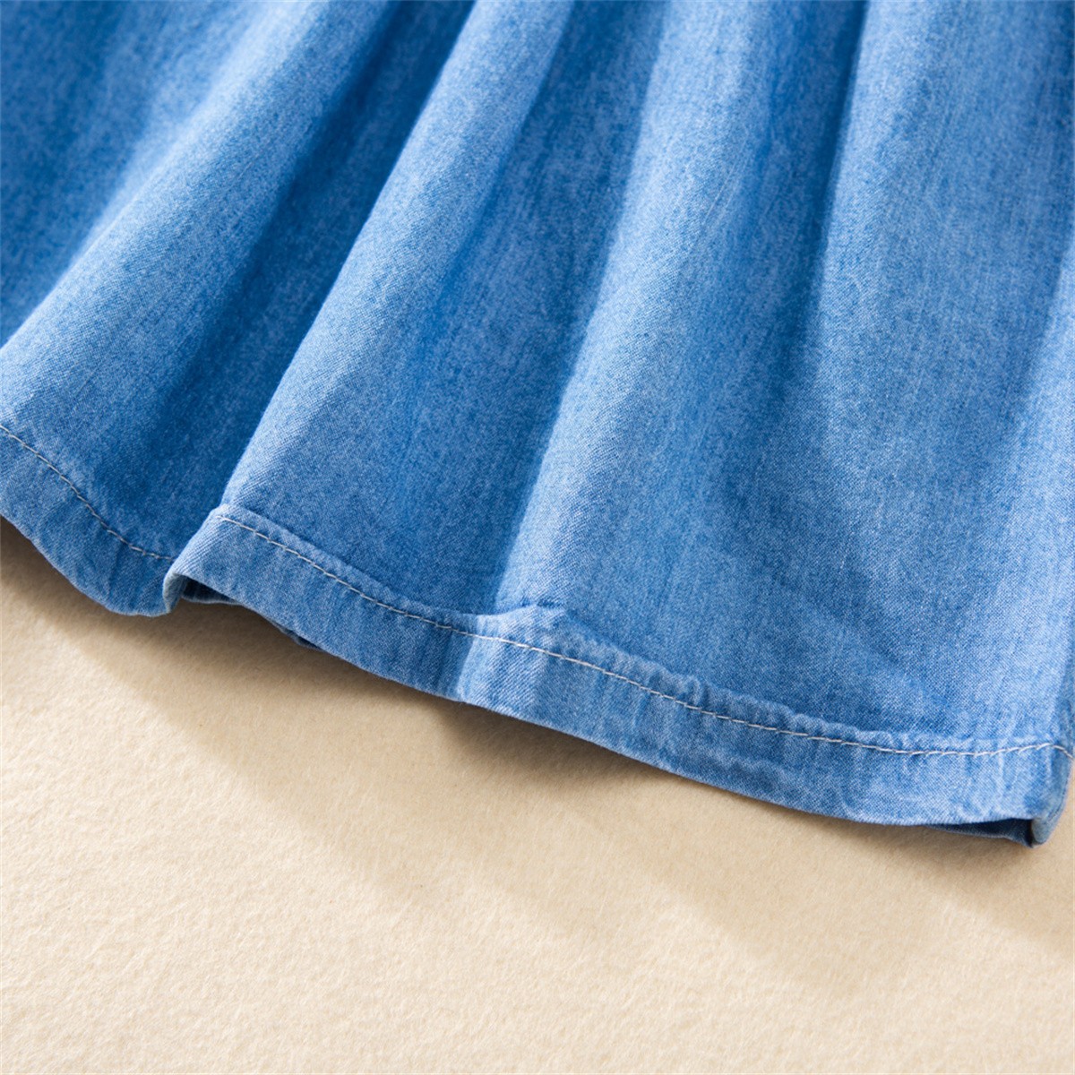 Toddler Girls Solid Round Neck Denim Dress Wholesale