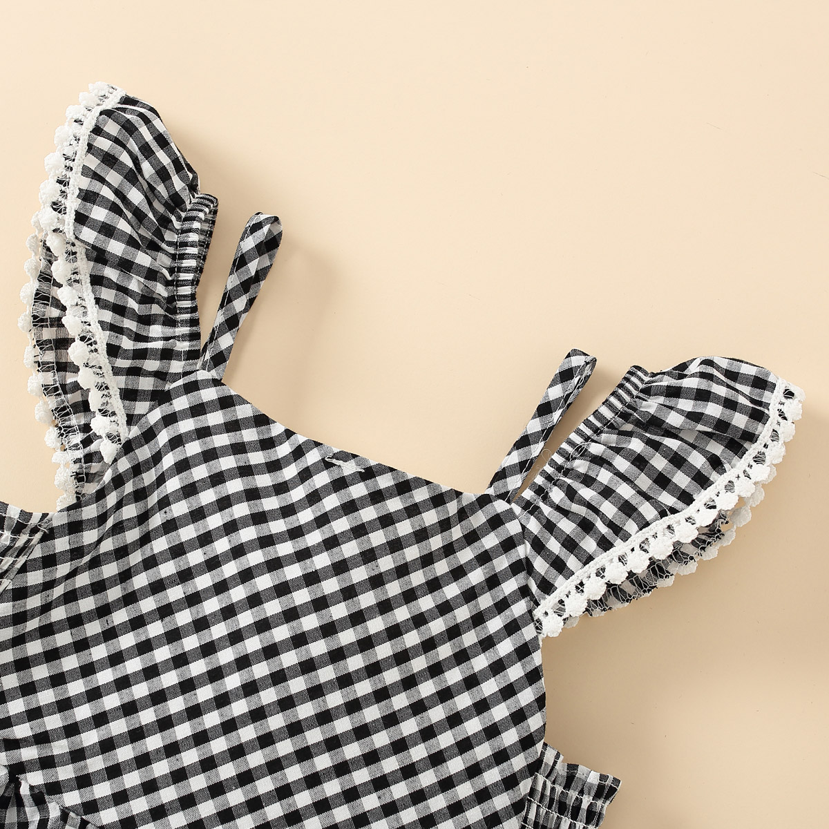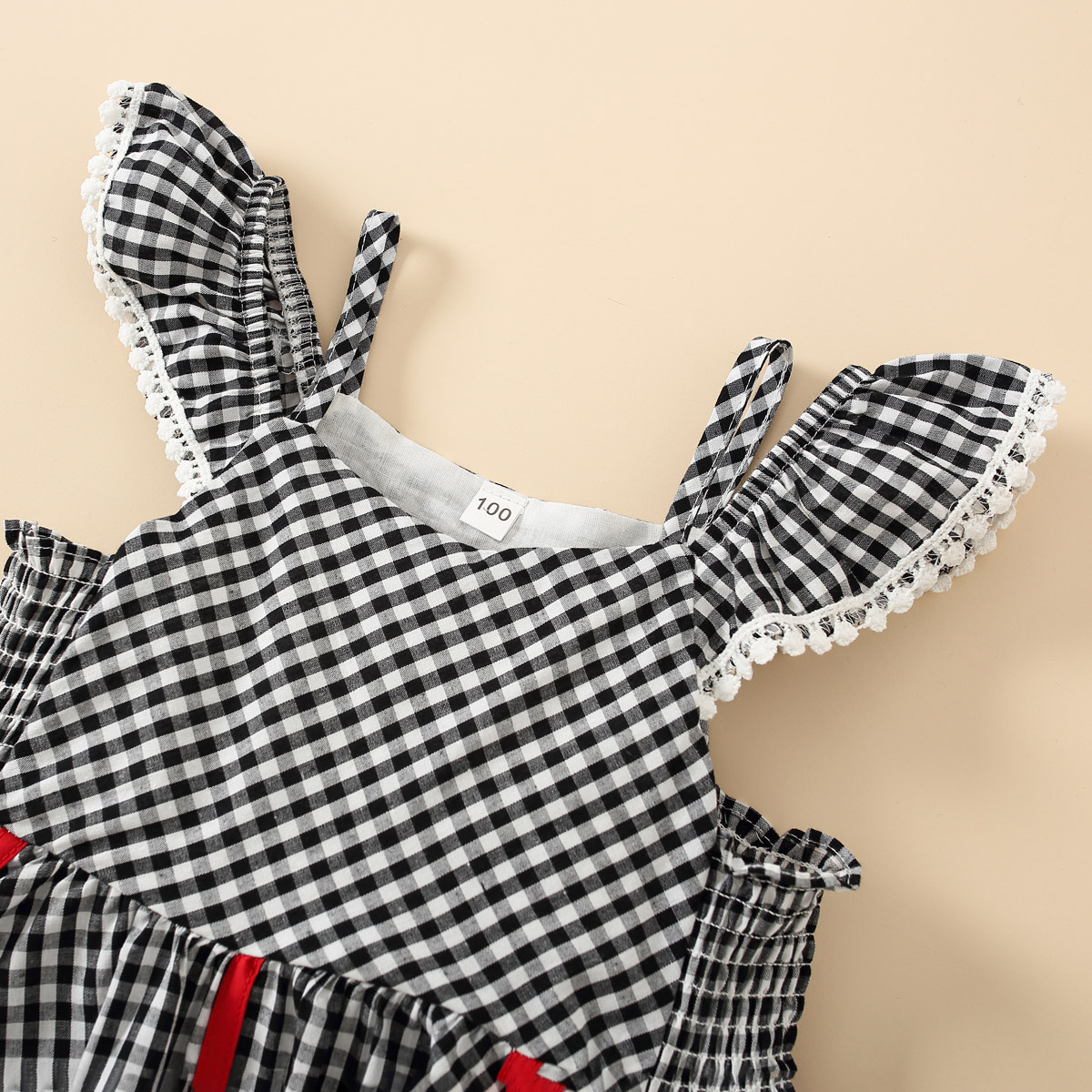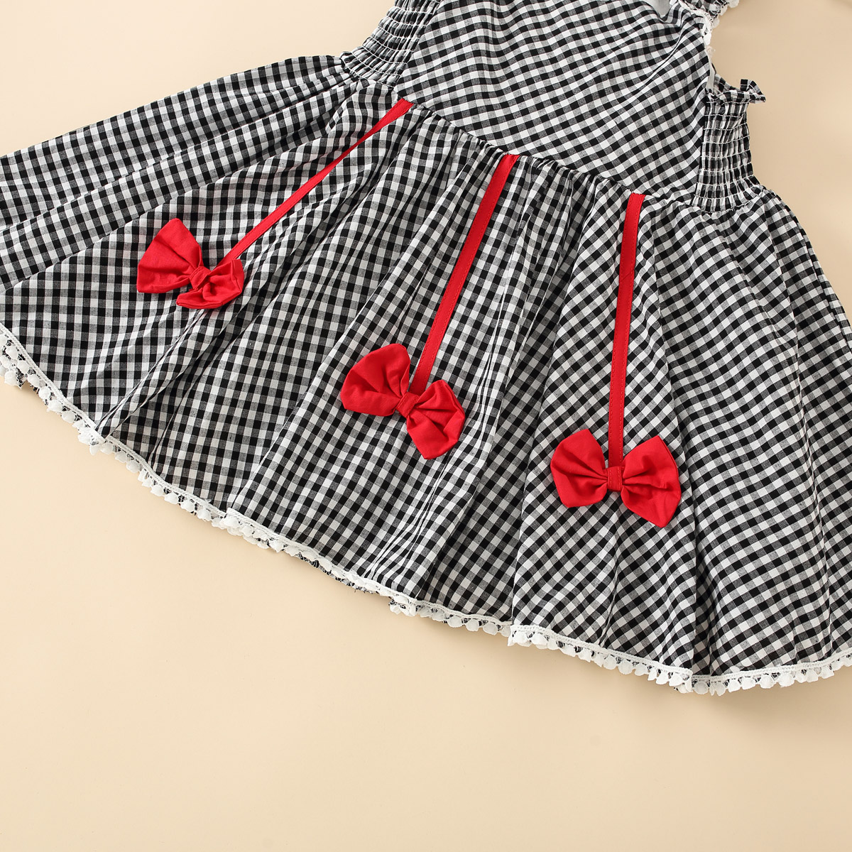 Toddler Girls Square Neck Plaid Color-block Bow Dress Wholesale