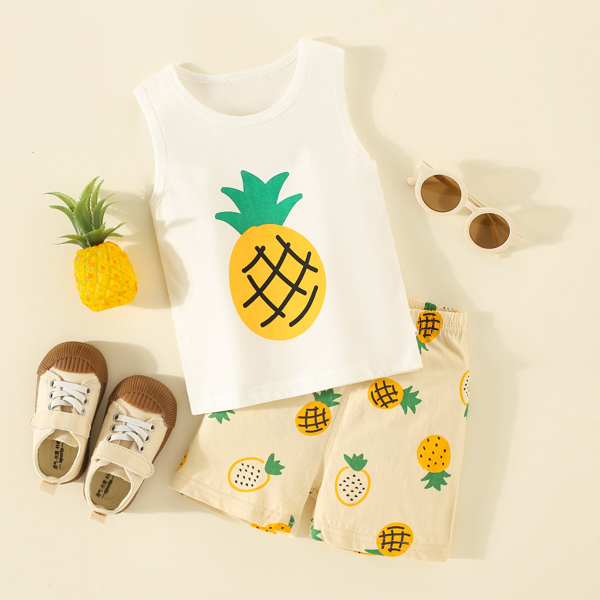 Baby Boy FruitBanana Pineapple Pattern Vest & Shorts Wholesale
