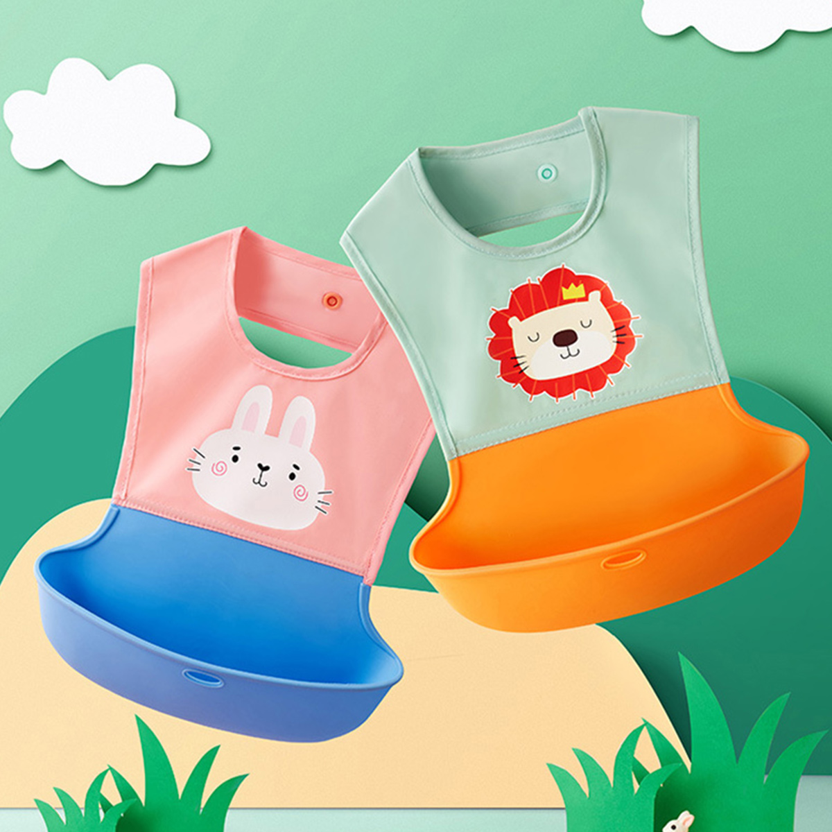Baby cartoon printed waterproof eating bib Three-dimensional supplementary food bib Wholesale