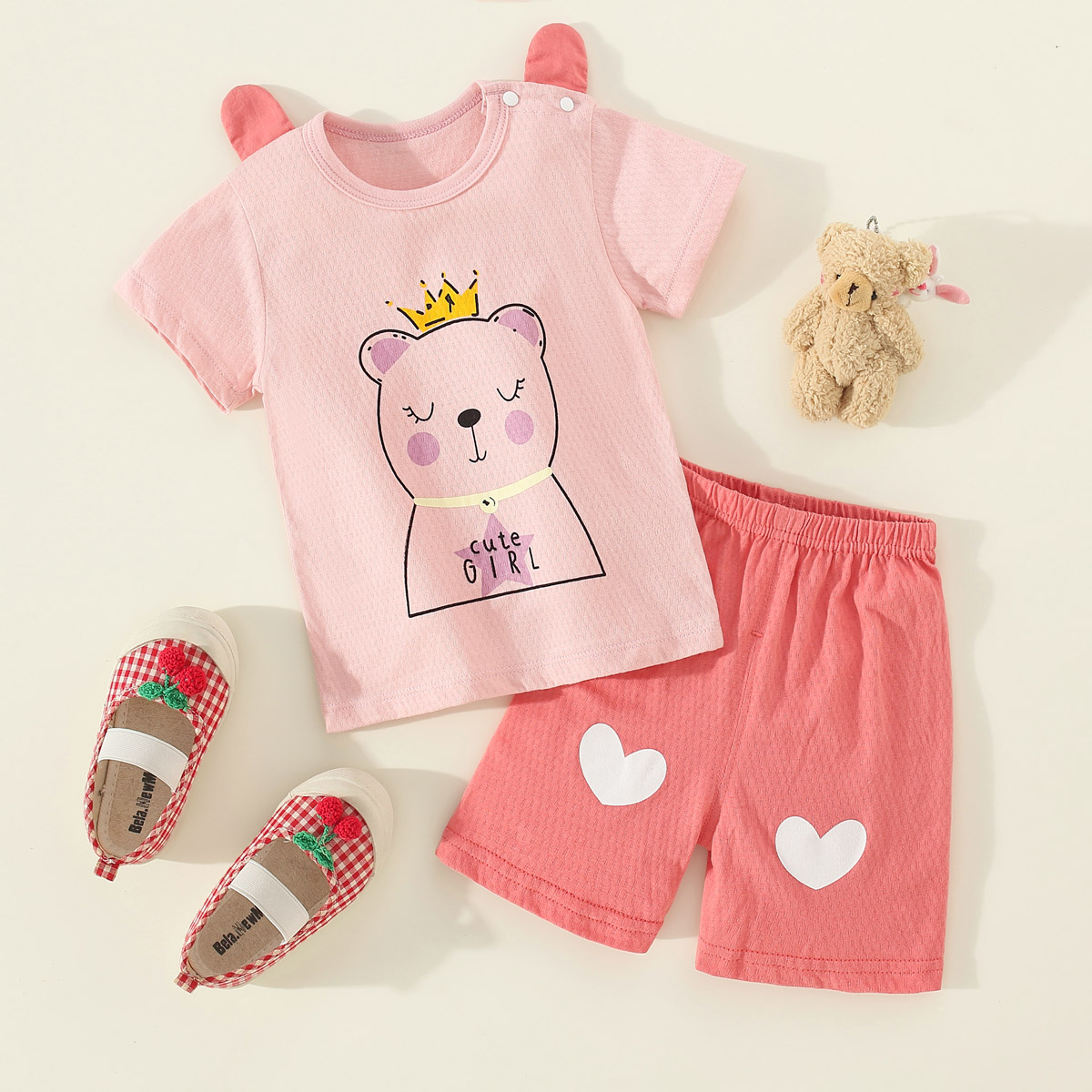 Toddler Girl Bear Pajama Top & Shorts Wholesale