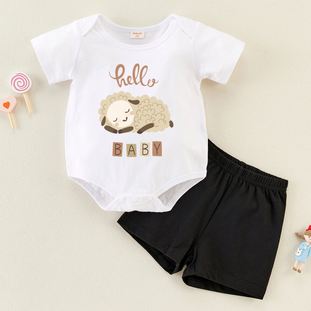 hibobi Baby Basic Sleeping Sheep Print Short Sleeves Suit Wholesale