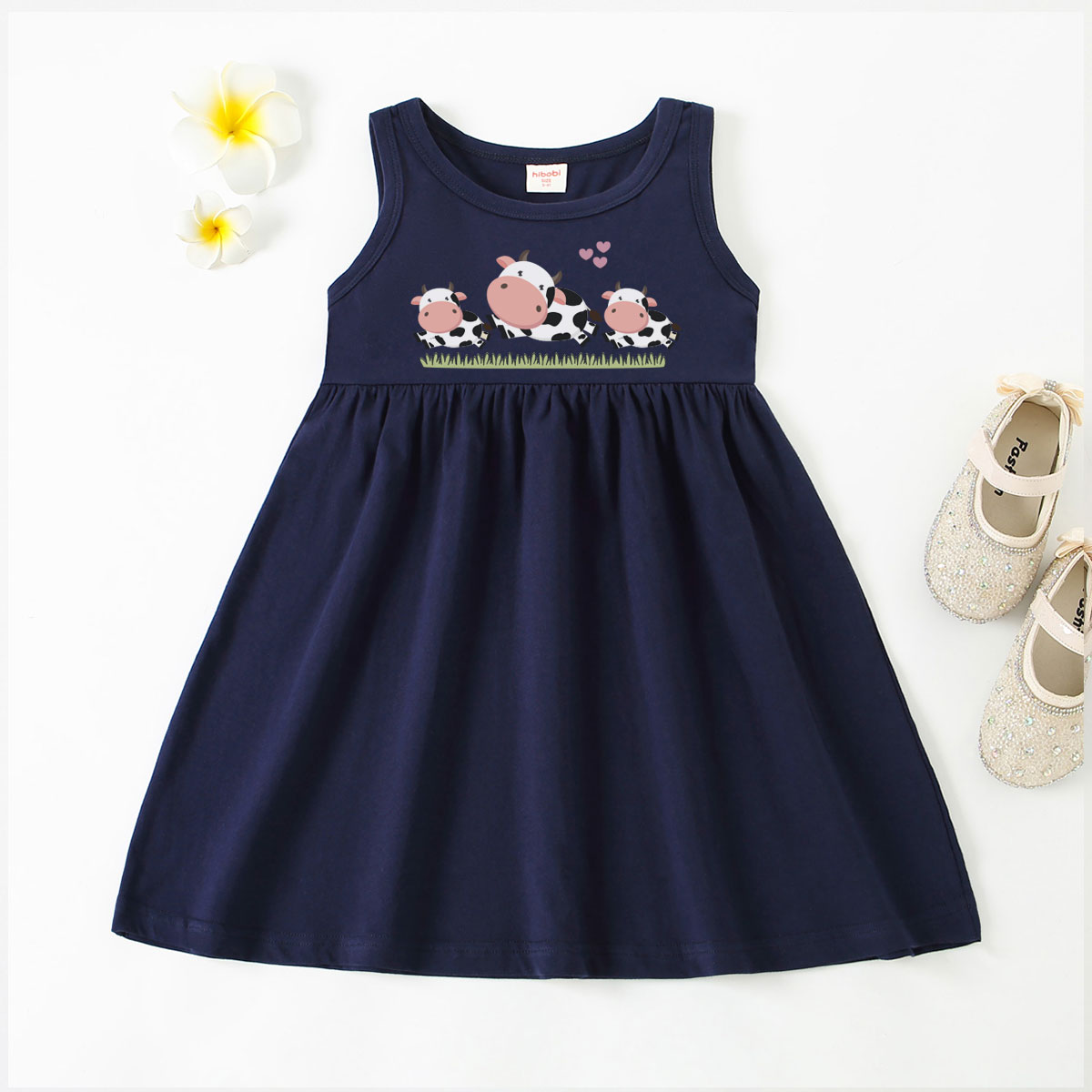 Toddler Girl Baby Basic Three Cows Print Sleeveless Dress Wholesale