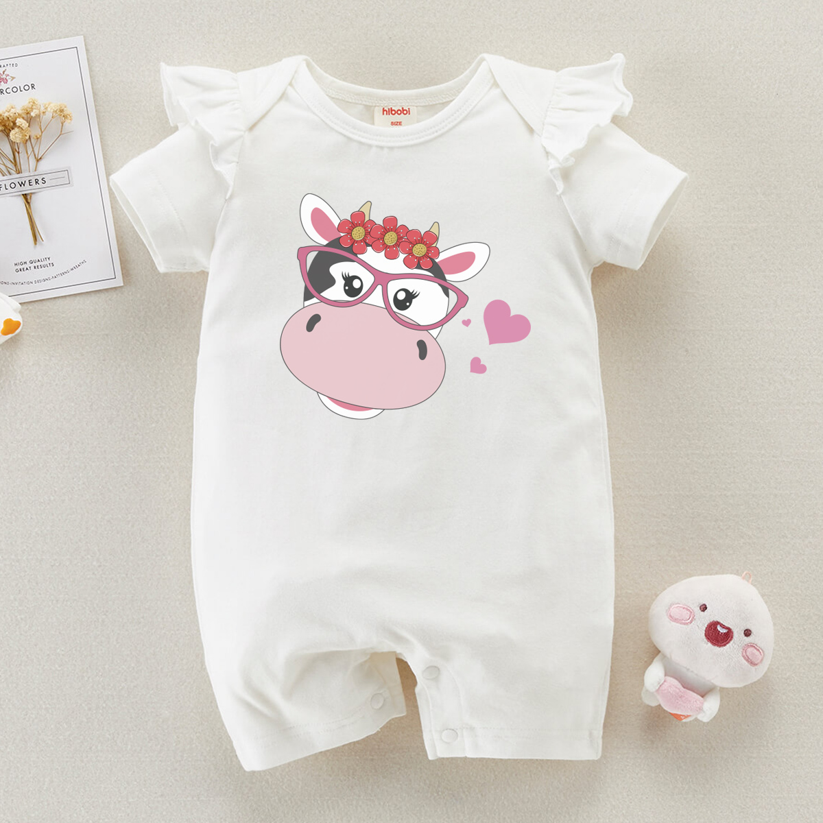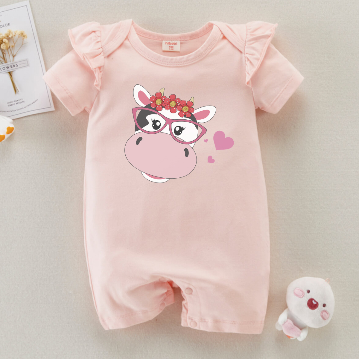 hibobi Girl Baby Basic Cow With Glasses Short Sleeves Bodysuit Wholesale