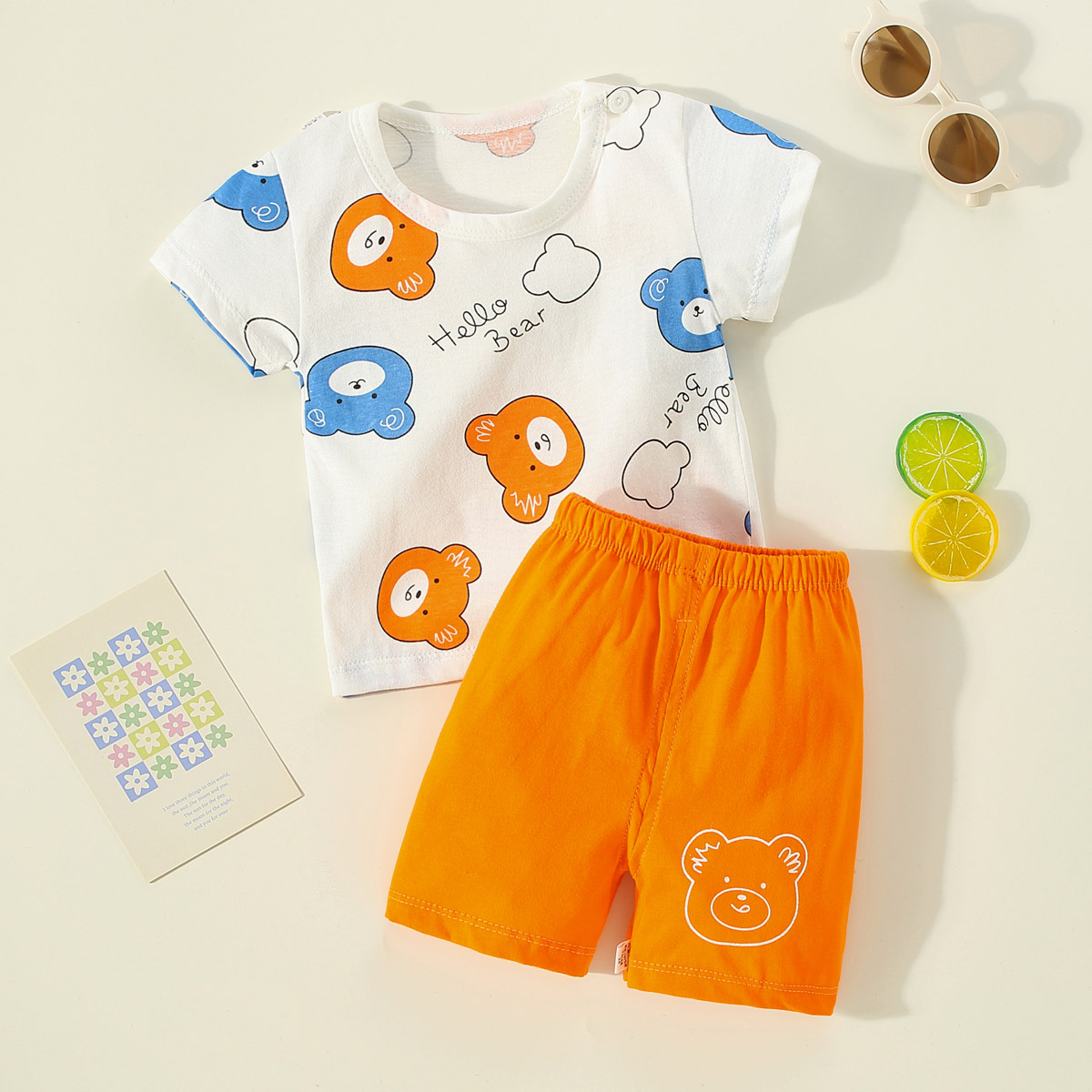 Toddler Boy Bear Casual Pajama Top & Shorts Wholesale