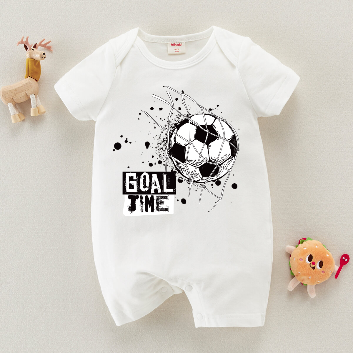 hibobi Boy Baby Football Shot On Goal Print Short Sleeve Bodysuit Wholesale