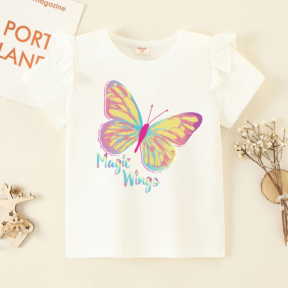 Toddler Girl Baby Basic Dazzling Butterfly Sleeve T-shirt Wholesale