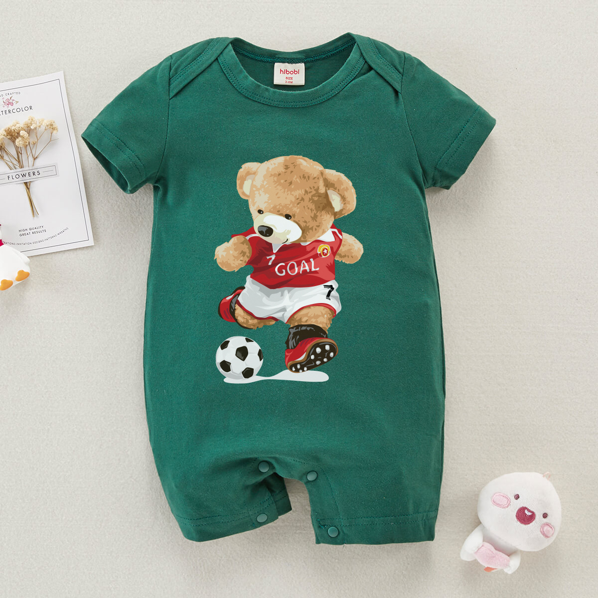 hibobi Boy Baby Bear Football Print Short Sleeve Bodysuit Wholesale