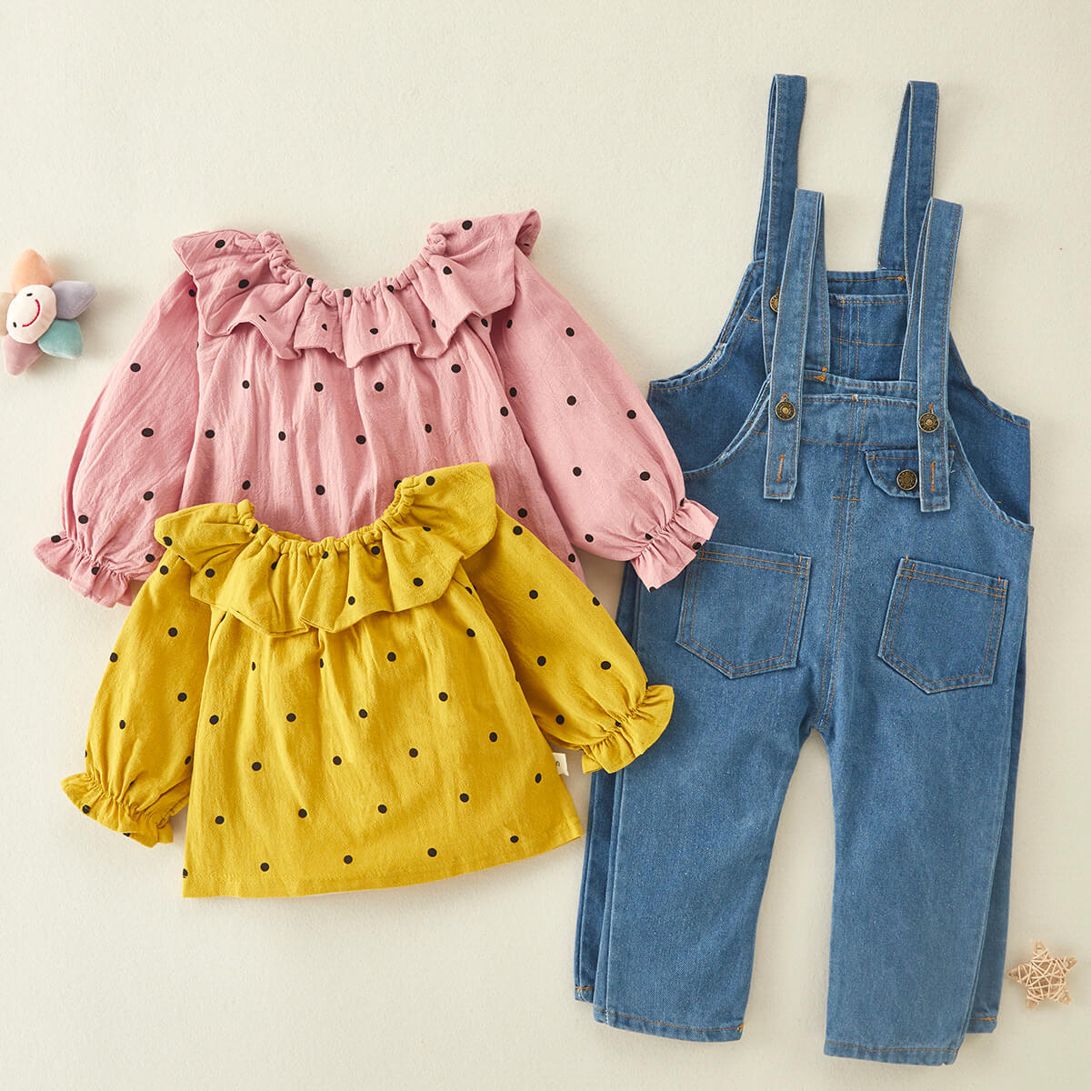 2-piece Polka Dot Blouse & Denim Dungarees for Toddler Girl Wholesale
