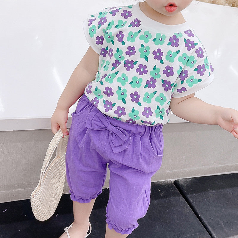 Toddler Girl Floral Print Top & Bowknot Pants Wholesale