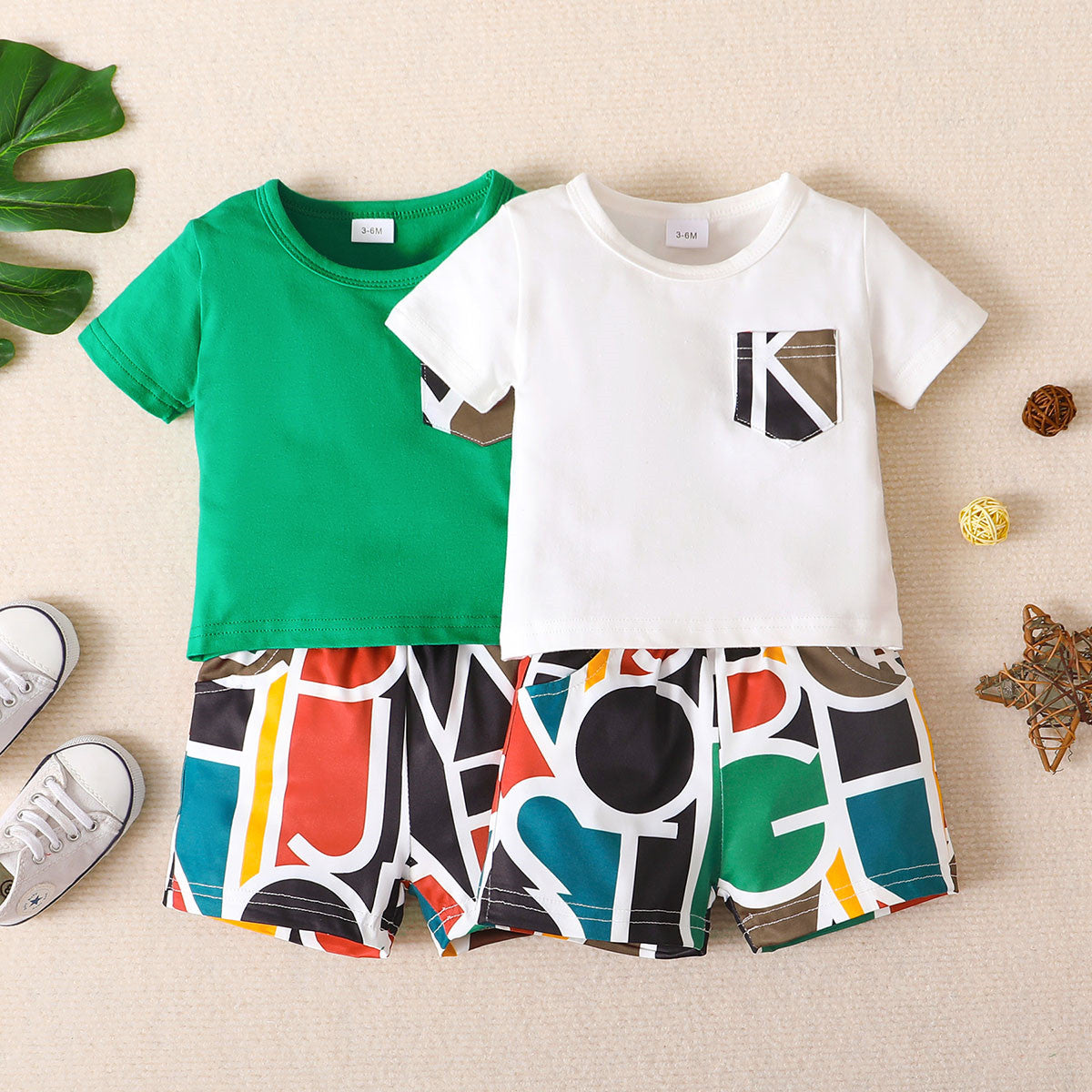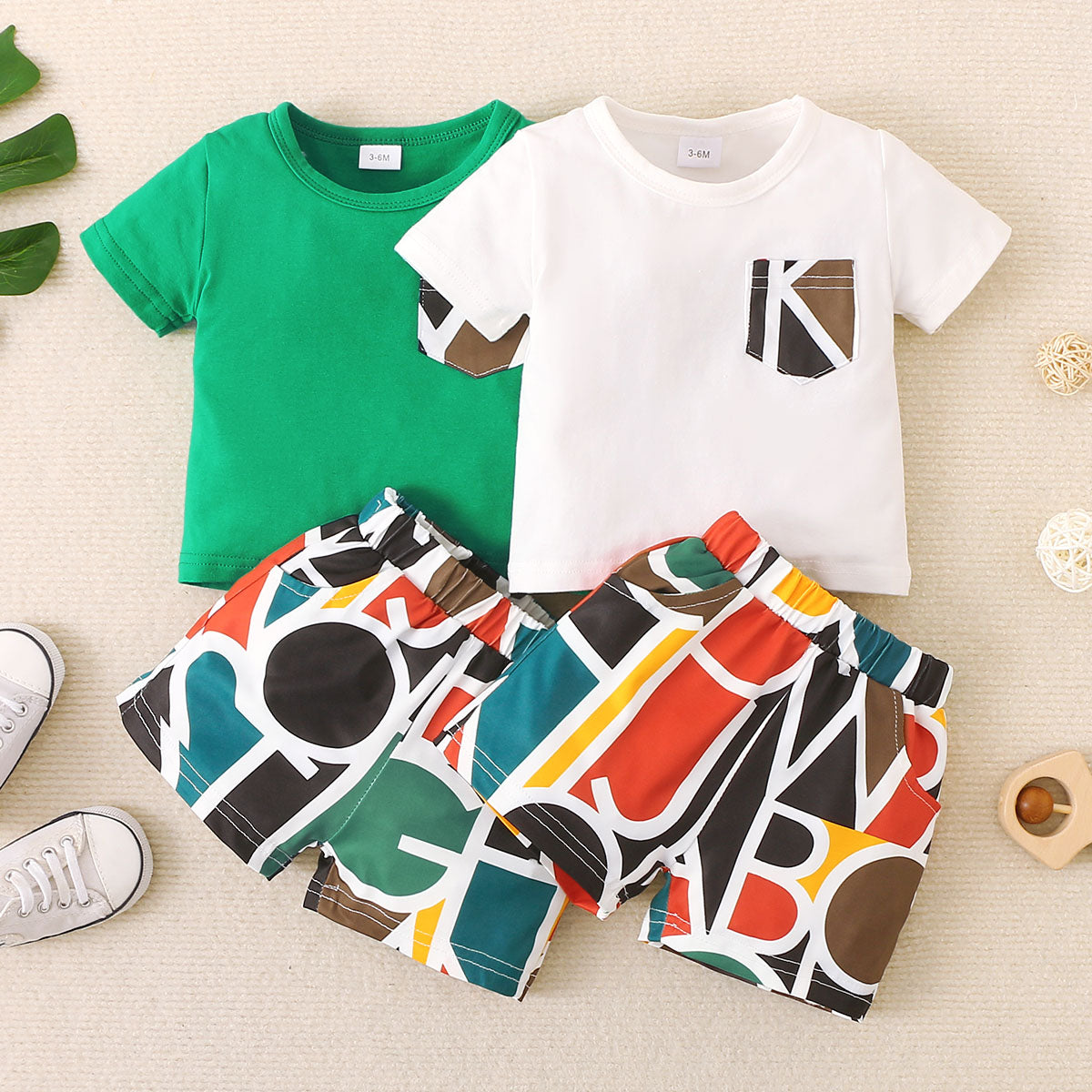 Baby Boy Pocket Decor Solid Color T-Shirt & Letter Pattern Shorts Wholesale