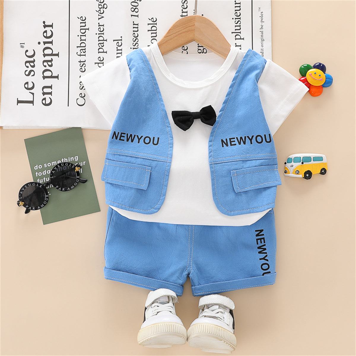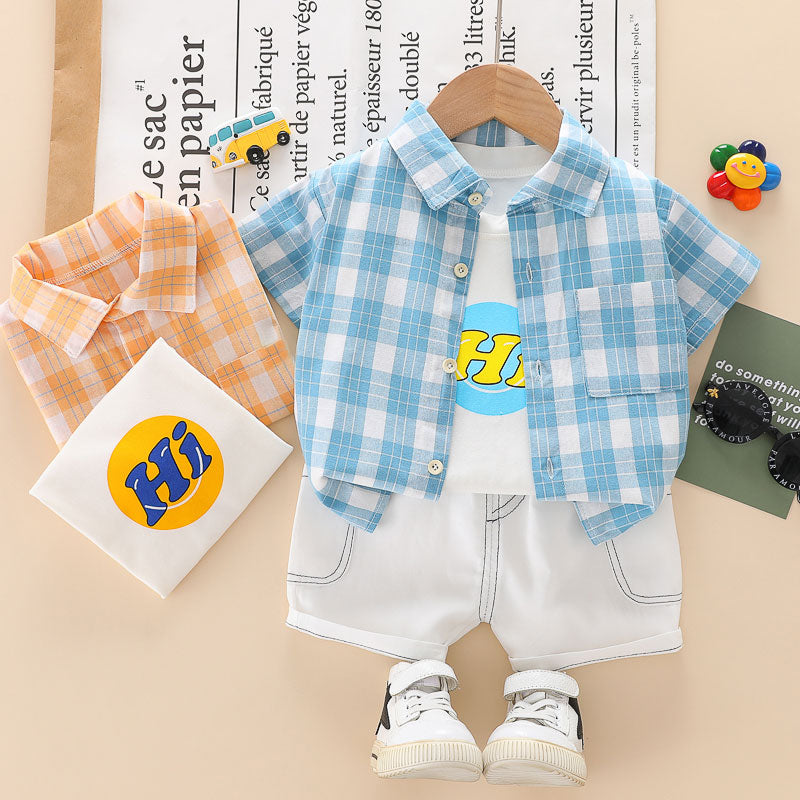 Toddler Boy Letter Pattern Vest & Plaid Shirt & Shorts Wholesale