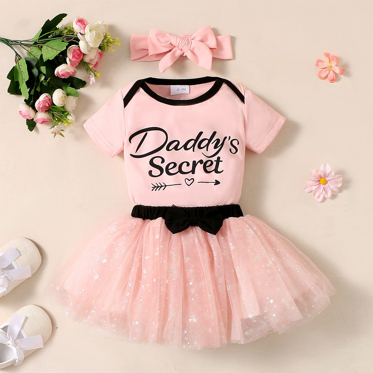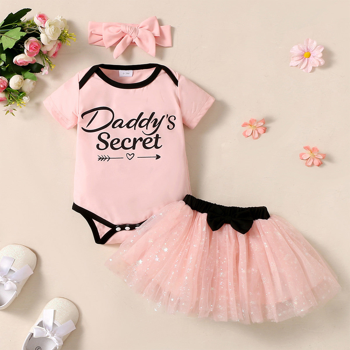 Baby Girl Cute Letter Bodysuit & Bow-knot Star Tutu Skirt & Headband Wholesale