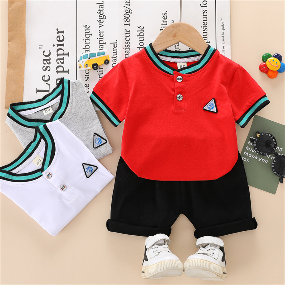 Toddler Boy Geometric Pattern Short Sleeves Top & Shorts Wholesale