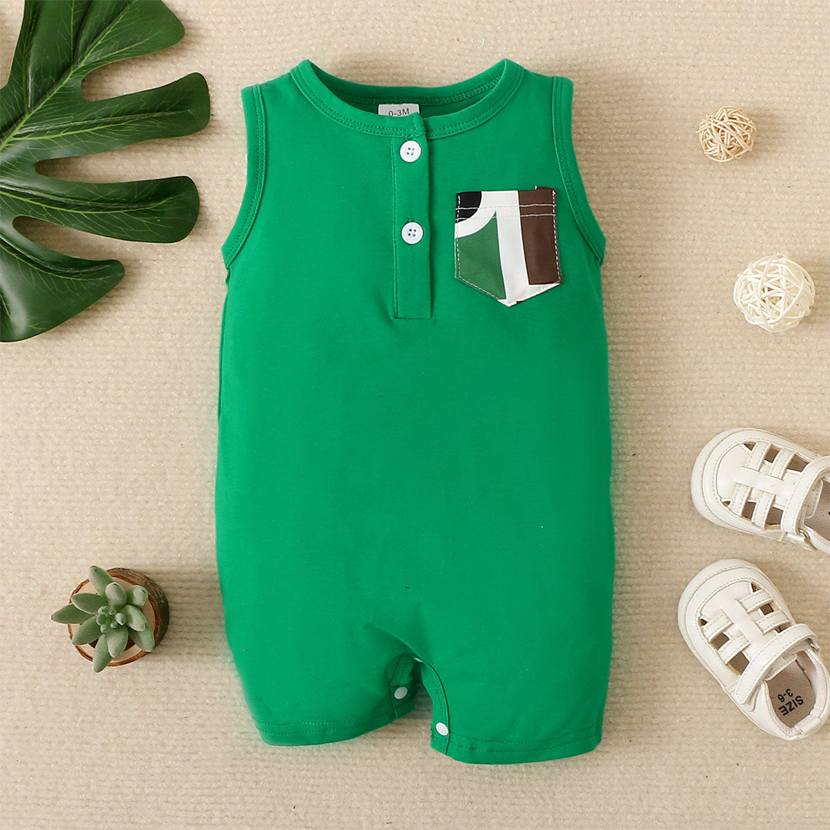 Baby Boy Cute Pocket Decor Letter Pattern Sleeveless Romper Wholesale