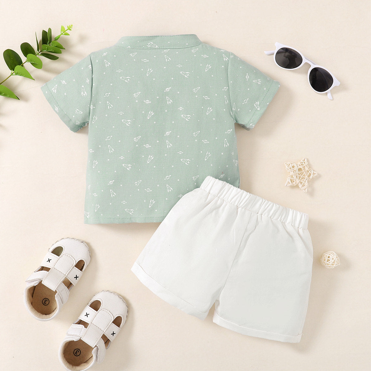 Baby Boy Space Star Rocket Pattern Stand-collar Shirt & Shorts Wholesale