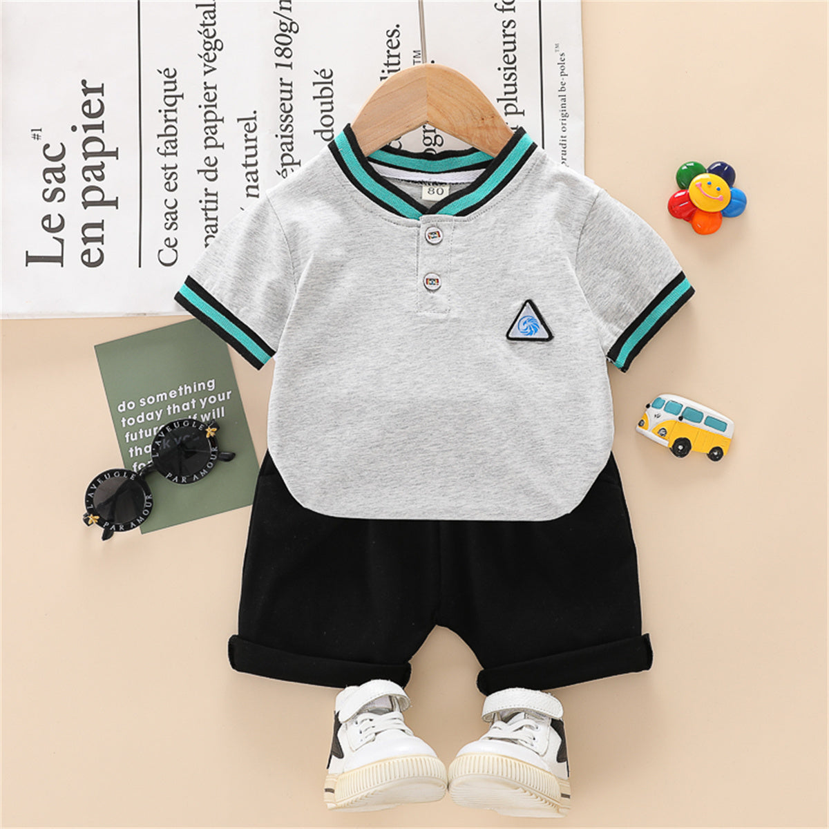 Toddler Boy Mock Two-Piece Letter Patterns Top & Shorts Wholesale