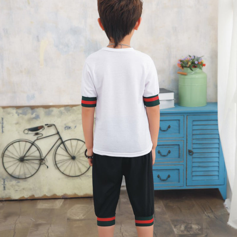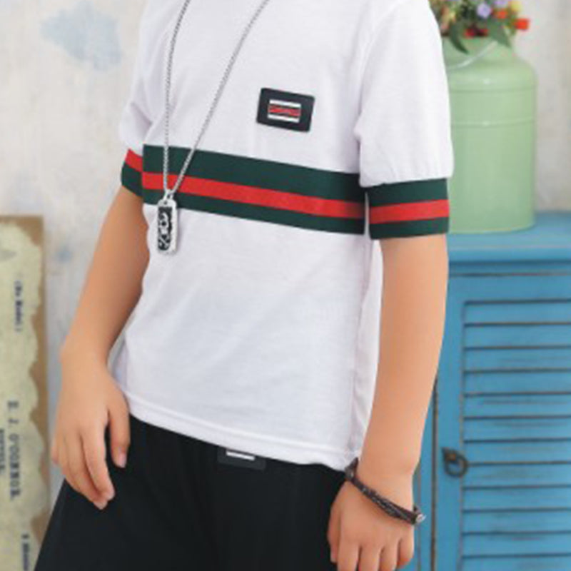 Boy 2pcs Color-block Pattern Cotton Suit T-shirts & Shorts Wholesale