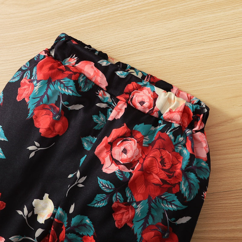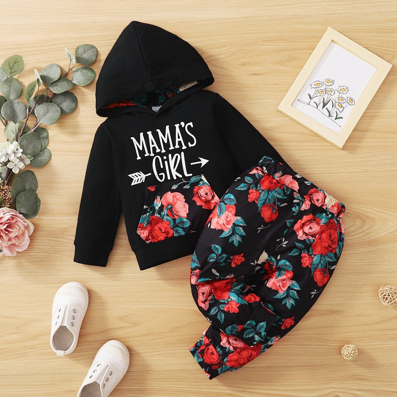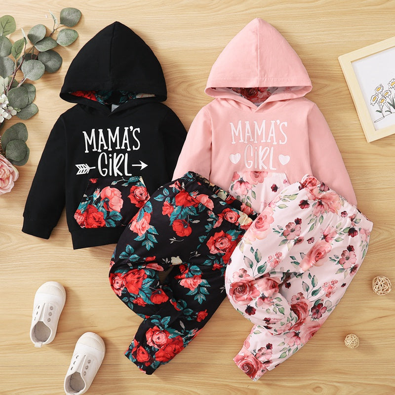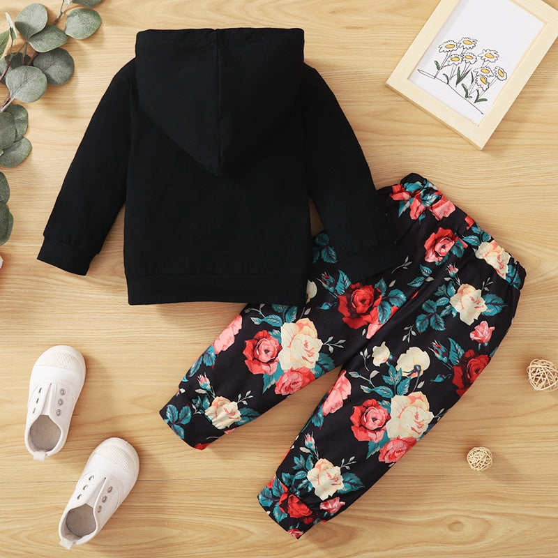 Toddler Girl Floral Print Long Sleeves Hoodie & Pants Wholesale