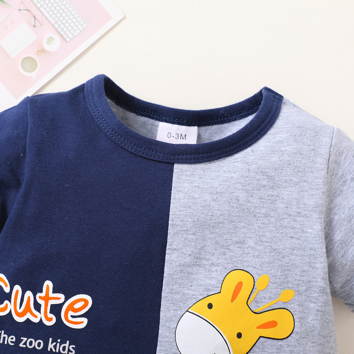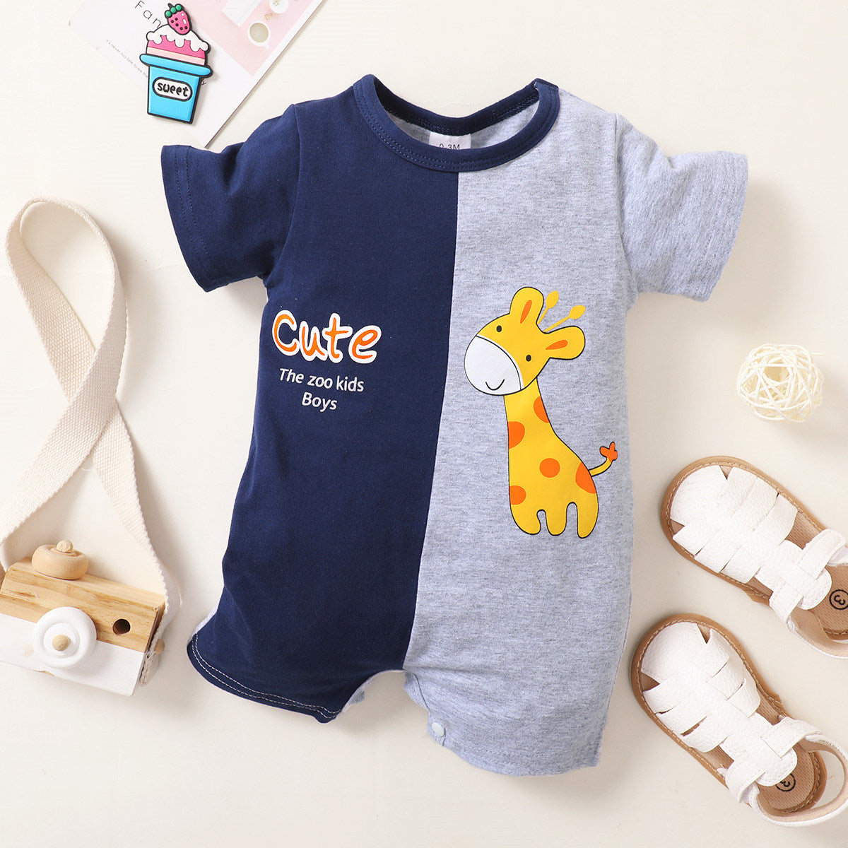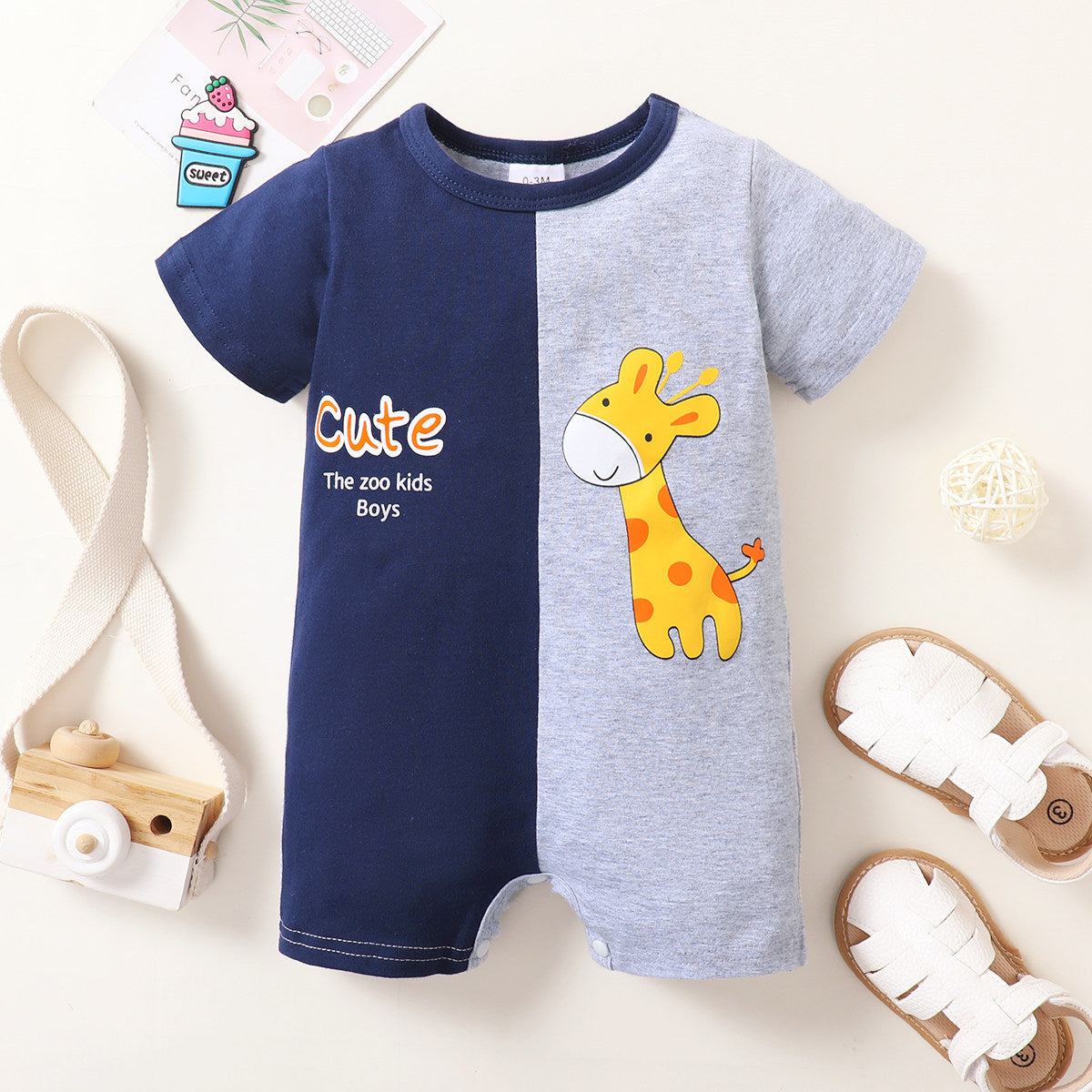 Baby Boy Color-block Animal Giraffe Letter Pattern Romper Wholesale