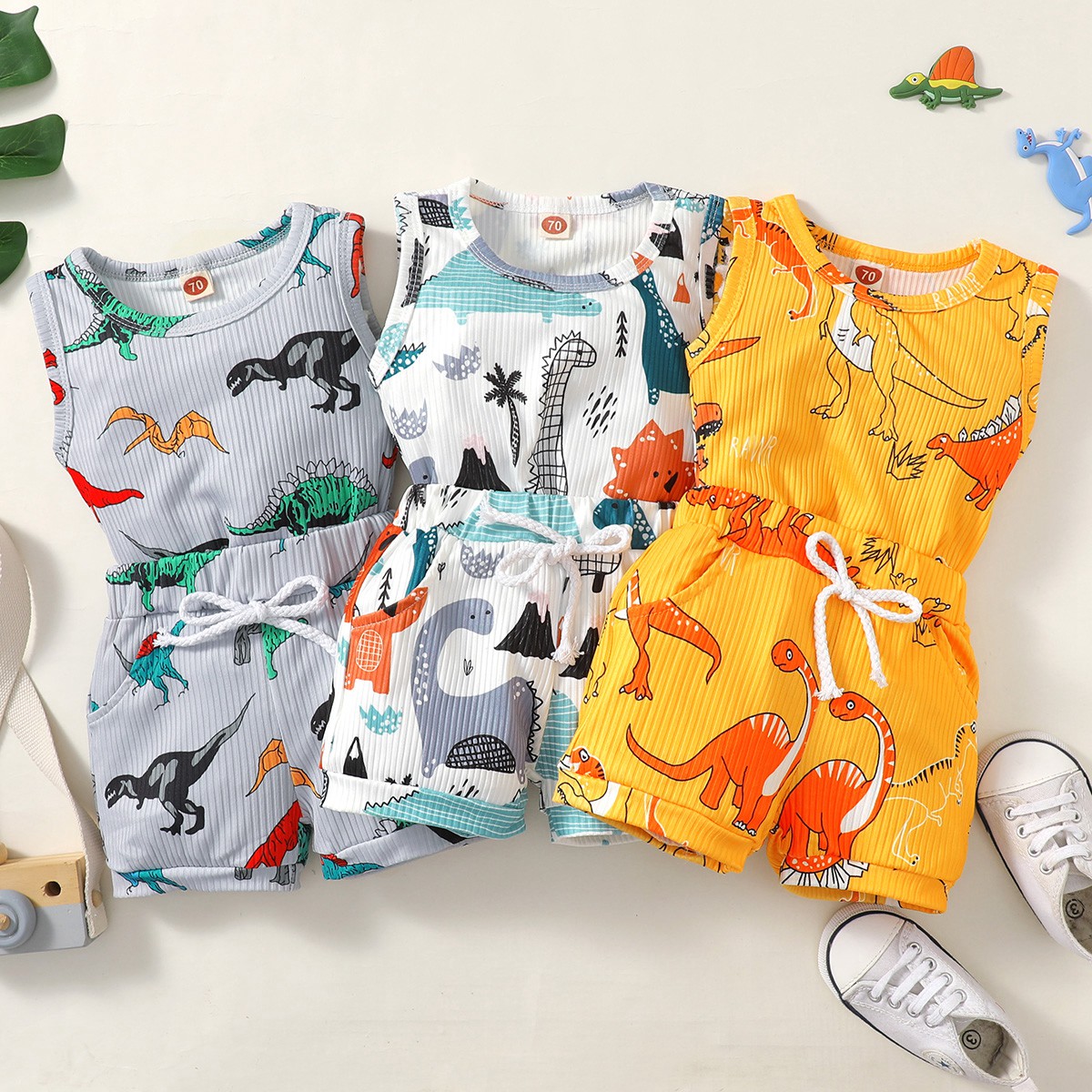 Baby Boy Dinosaur Print Vest Top And Shorts Wholesale