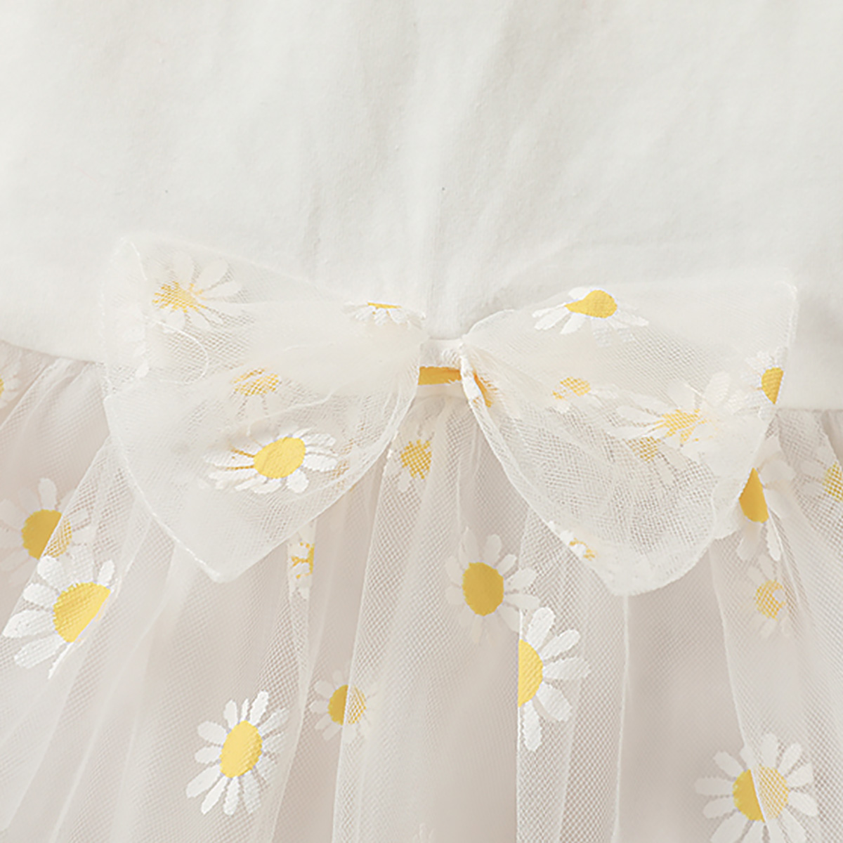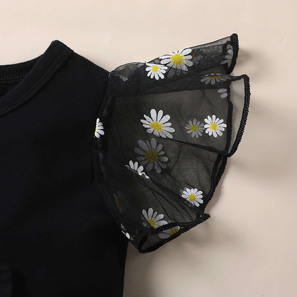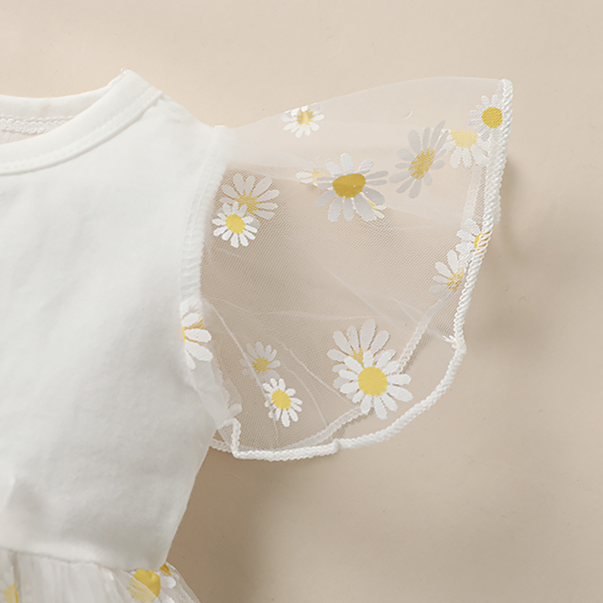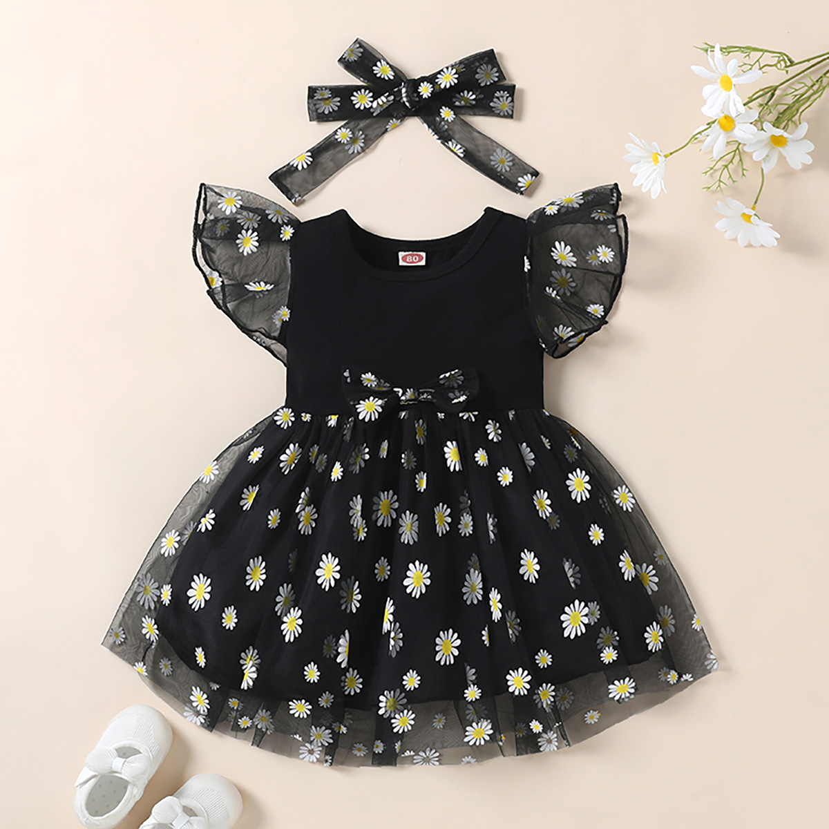 Baby Girl Beautiful Mesh Ruffle Sleeve Floral Print Dress with Headband Wholesale