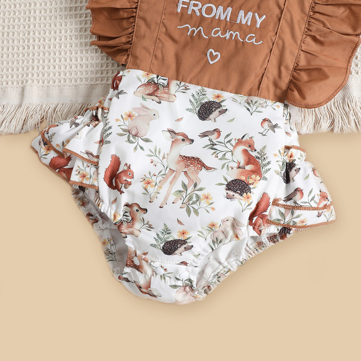 Baby Girl Color-Block Letter Floral Ruffle-sleeve Bodysuit & Headband Wholesale