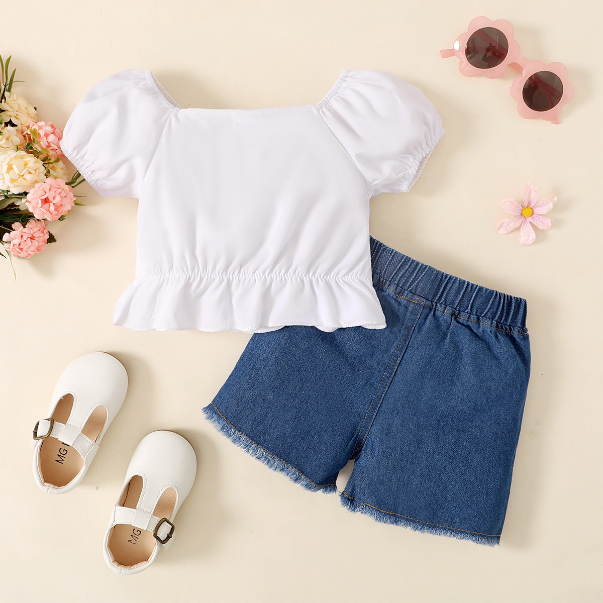 Baby Girl Elegant Solid Front button Top And Denim Shorts Wholesale