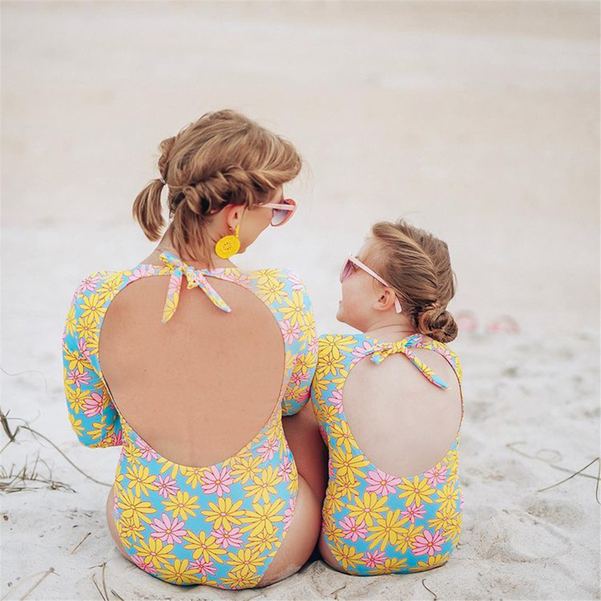 Causal Floral Pattern Print One Piece Swimsuit for Mom and Me Wholesale