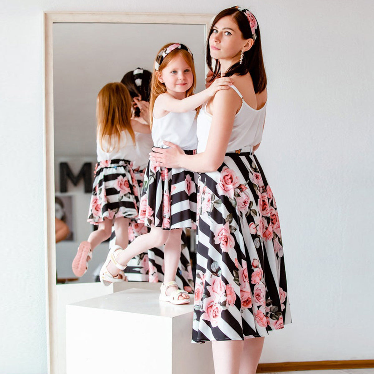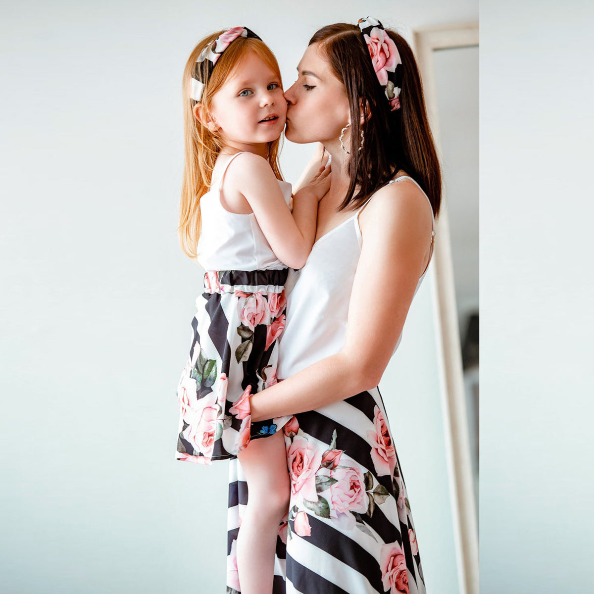 Elegant Floral Print V-neck Long Dress for Mom and Me Wholesale