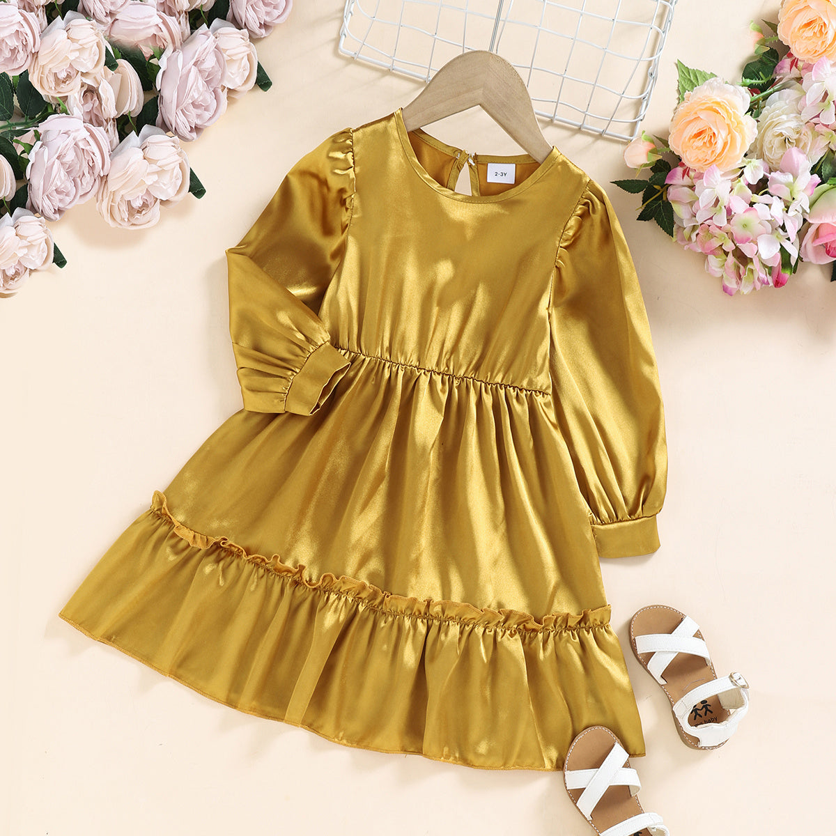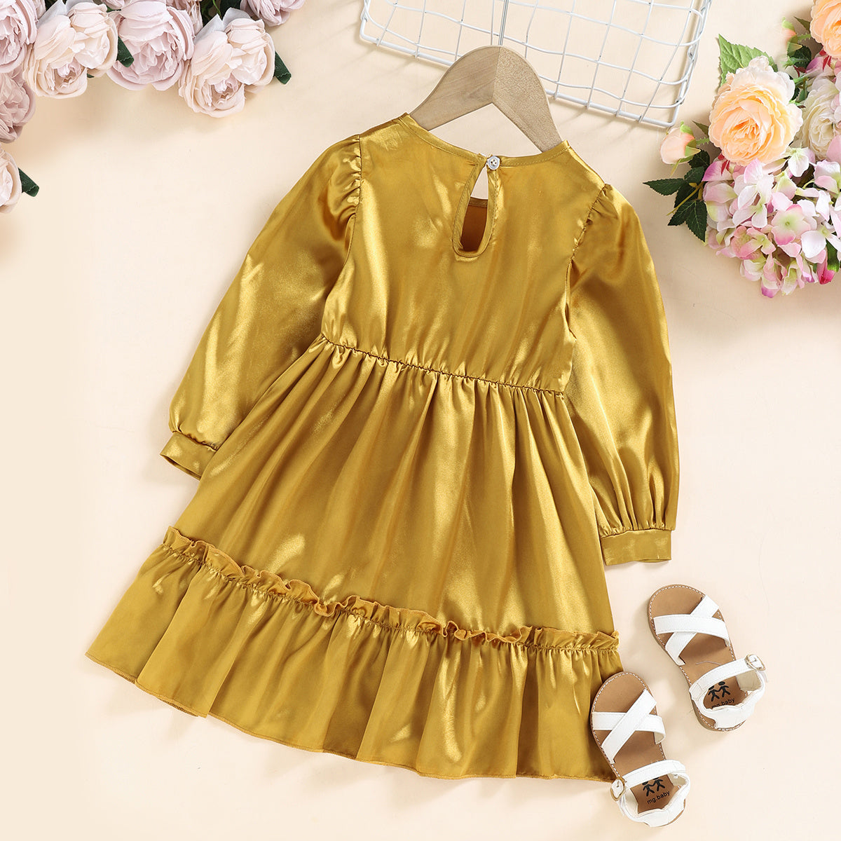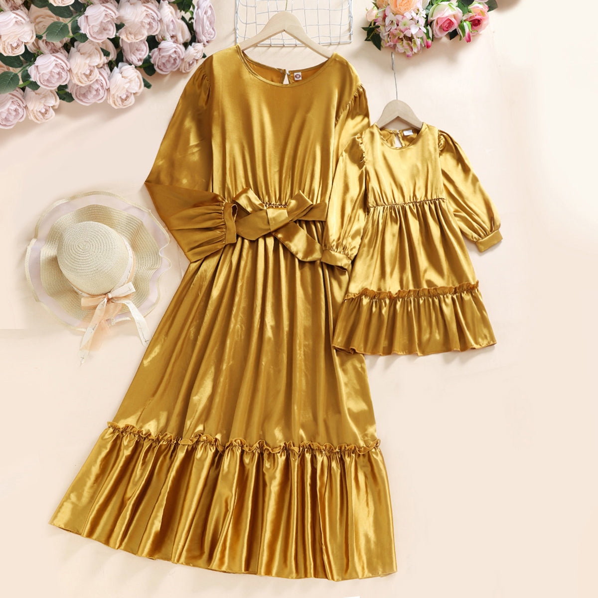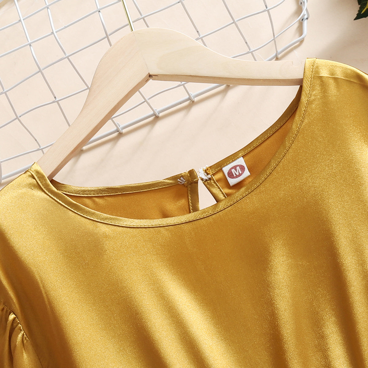 Elegant Solid Color Round Neck Long Dress for Mom and Me Wholesale